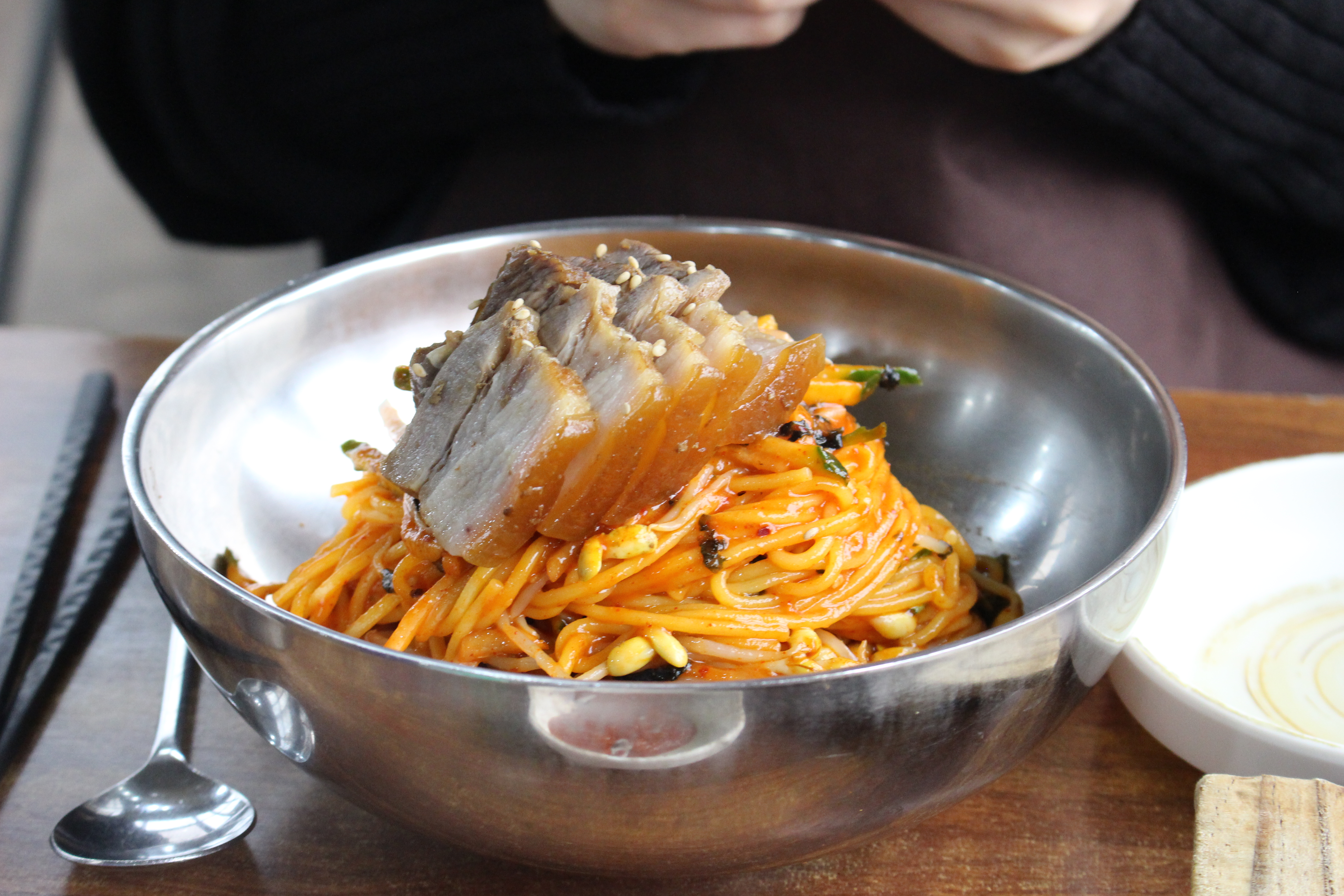 비빔국수는 새콤달콤한 감칠맛이 정말 좋았습니다. 정말 맛있었는데 둘 중 하나만 고르라면 고기 국수를 고를 것 같아요. 물론 양념이 기성 양념을 쓰는 게 아니라 이 가게만의 새콤달콤한 맛이 있긴 한데 고기 국수의 국물은 다른 데서 먹을 수 없는 거니까요. 혹시 혼자 먹으러 가신다면 저는 고기 국수를 추천드려요!