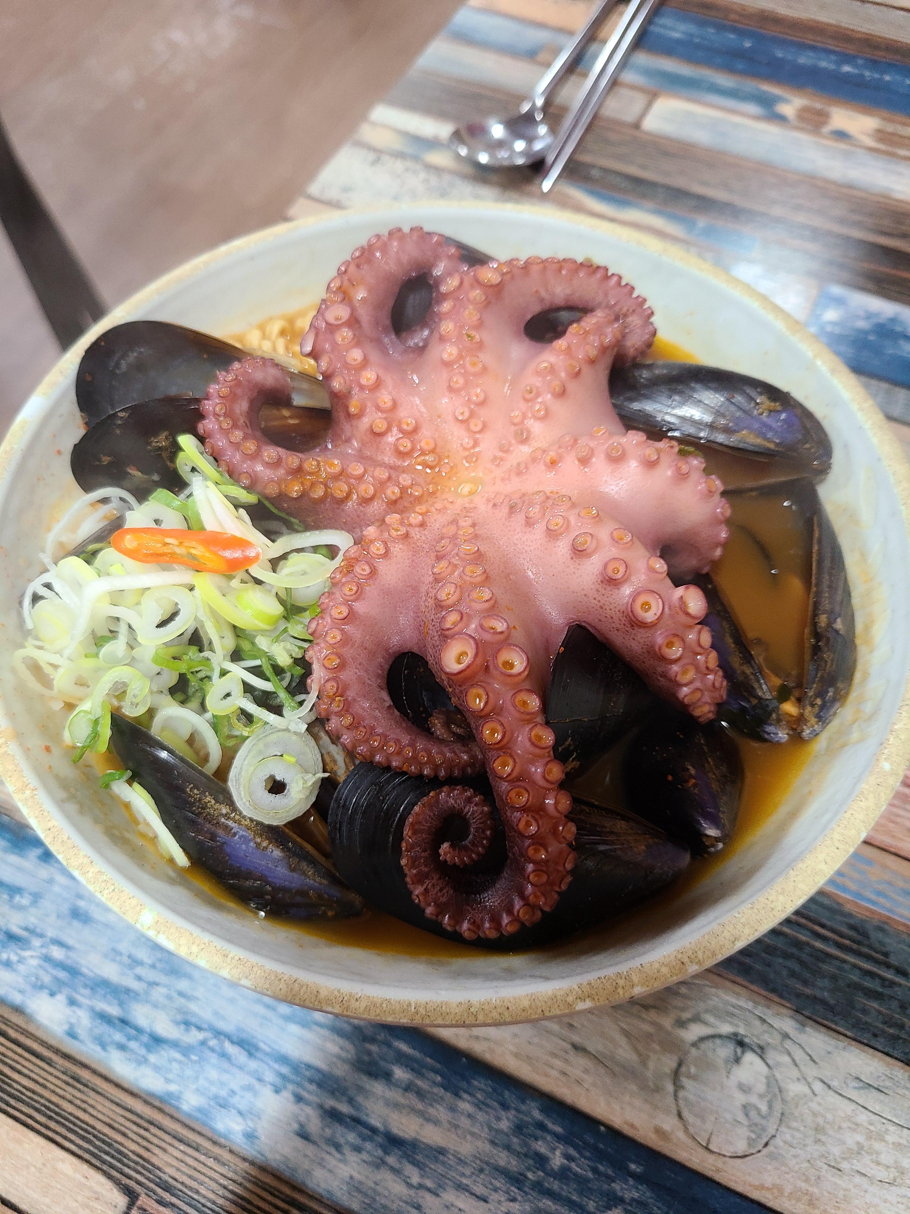 해물라면은 꽃게탕처럼 해물 맛을 즐길 수 있고, 문어 라면은 딱 문어만 들어가서 라면 국물 맛을 더 잘 느낄 수 있었습니다.