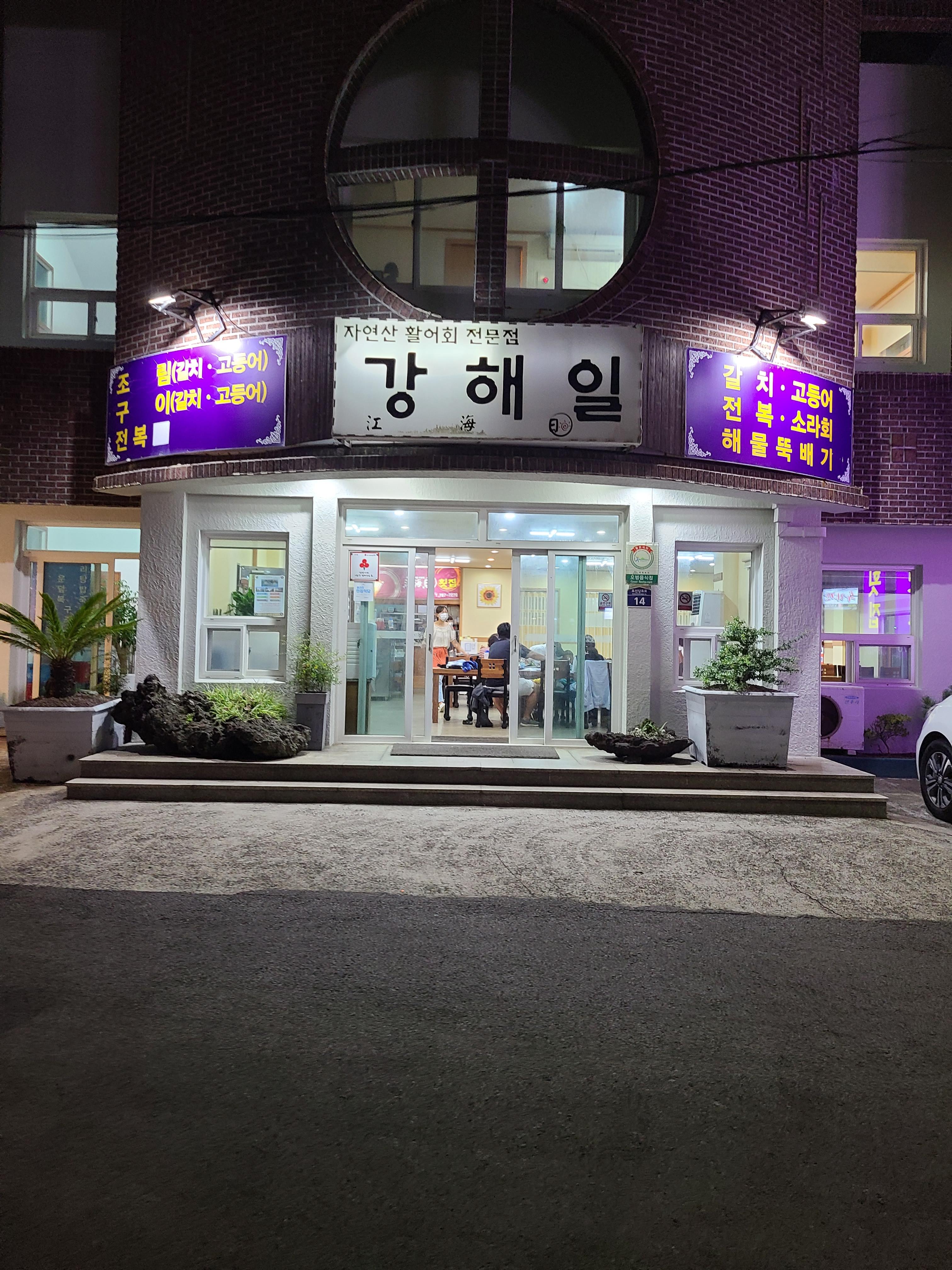 해물 뚝배기를 판다고 적혀있어서 강해일이라는 횟집을 찾아갔어요.