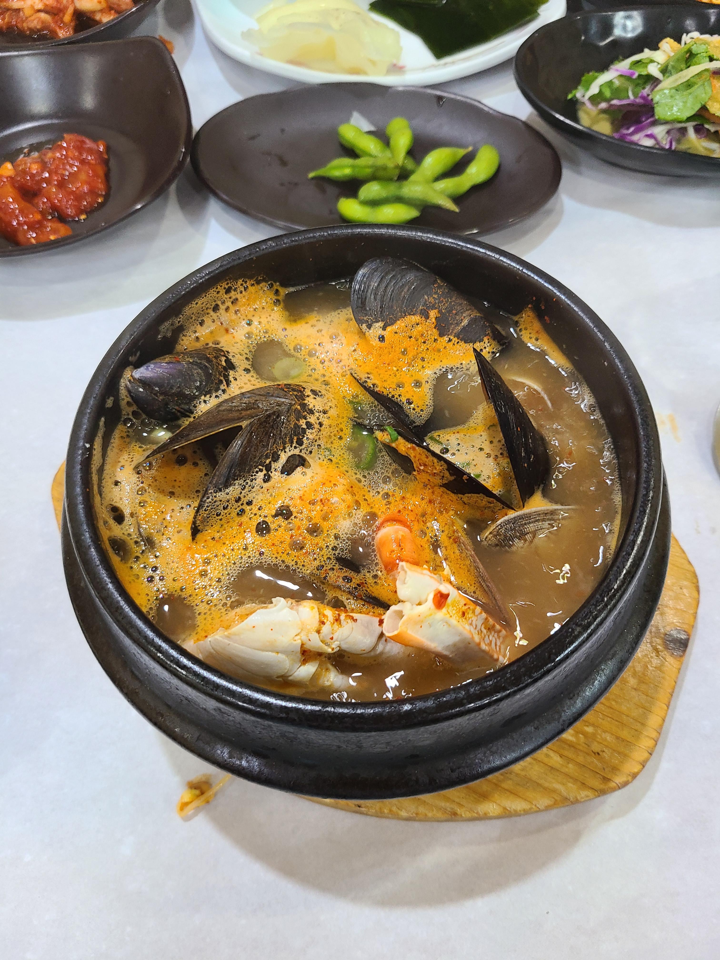 된장 베이스의 해물 뚝배기였는데 땀 줄줄 흘리면서 너무 맛있게 먹었어요.