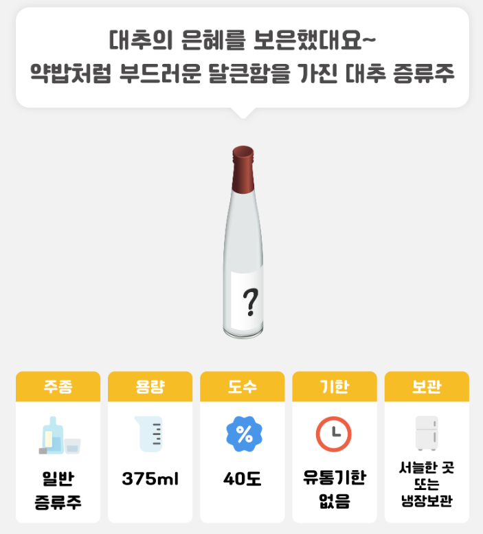 현재 대추 소주를 구할 수 있는 곳은 술담화 쇼핑몰입니다!