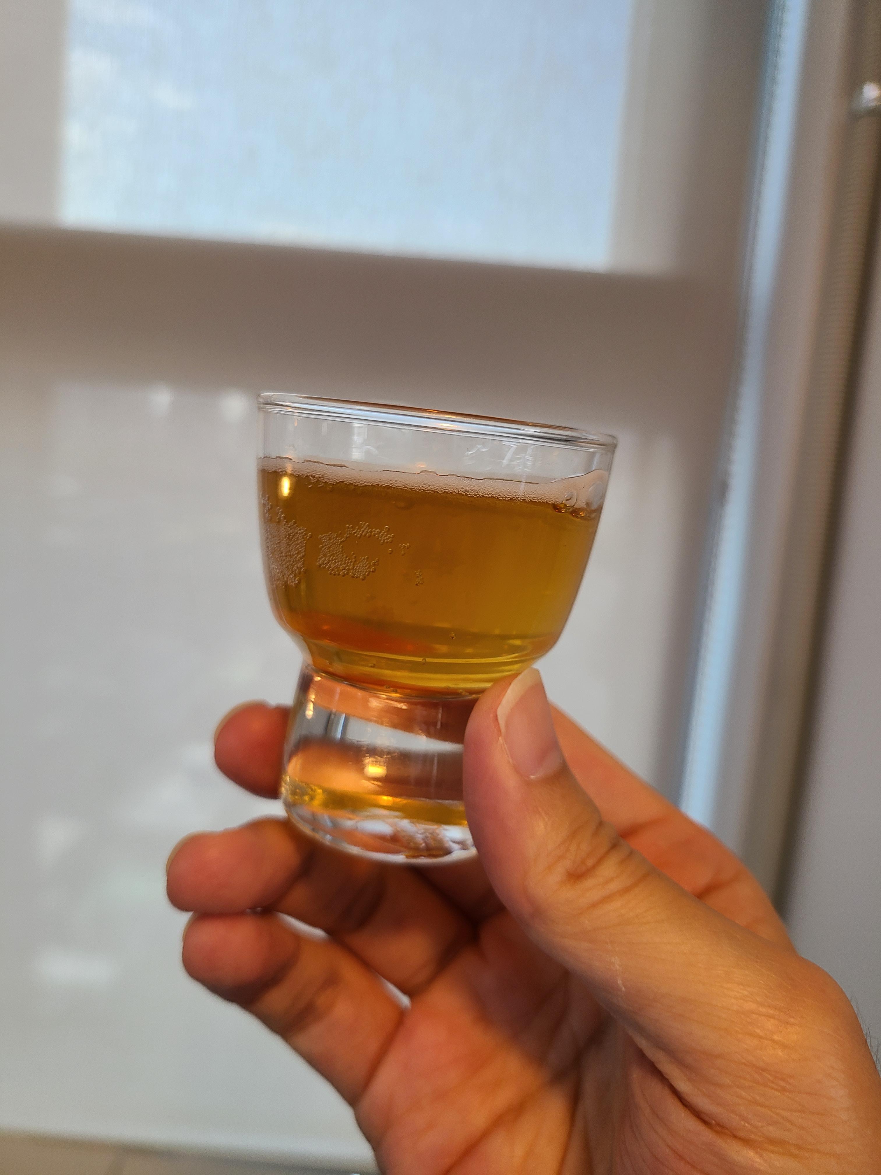 맥주의 색깔은 약간 진한 색입니다. 페일 에일 정도의 색이네요. 라거보다는 갈색이 진합니다.