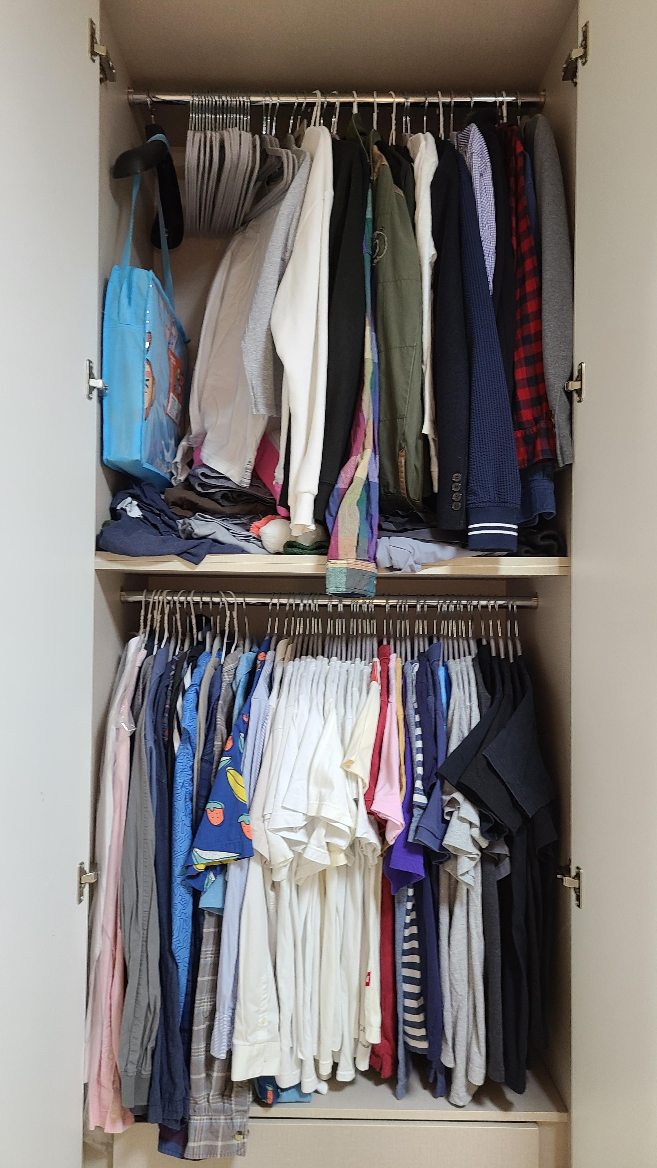 그리고 이전에는 옷들이 쌓여있어서 아래에 있는 옷은 잘 꺼내 입지 못했습니다. 이번에 다림질 후 옷걸이에 걸어서 정리하니 맞다 내가 이런 옷도 있었지! 하면서 몇 년 만에 그 티셔츠를 입게 되더라구요ㅎㅎ 제가 가지고 있는 옷들을 잘 활용할 수 있어서 좋았어요.