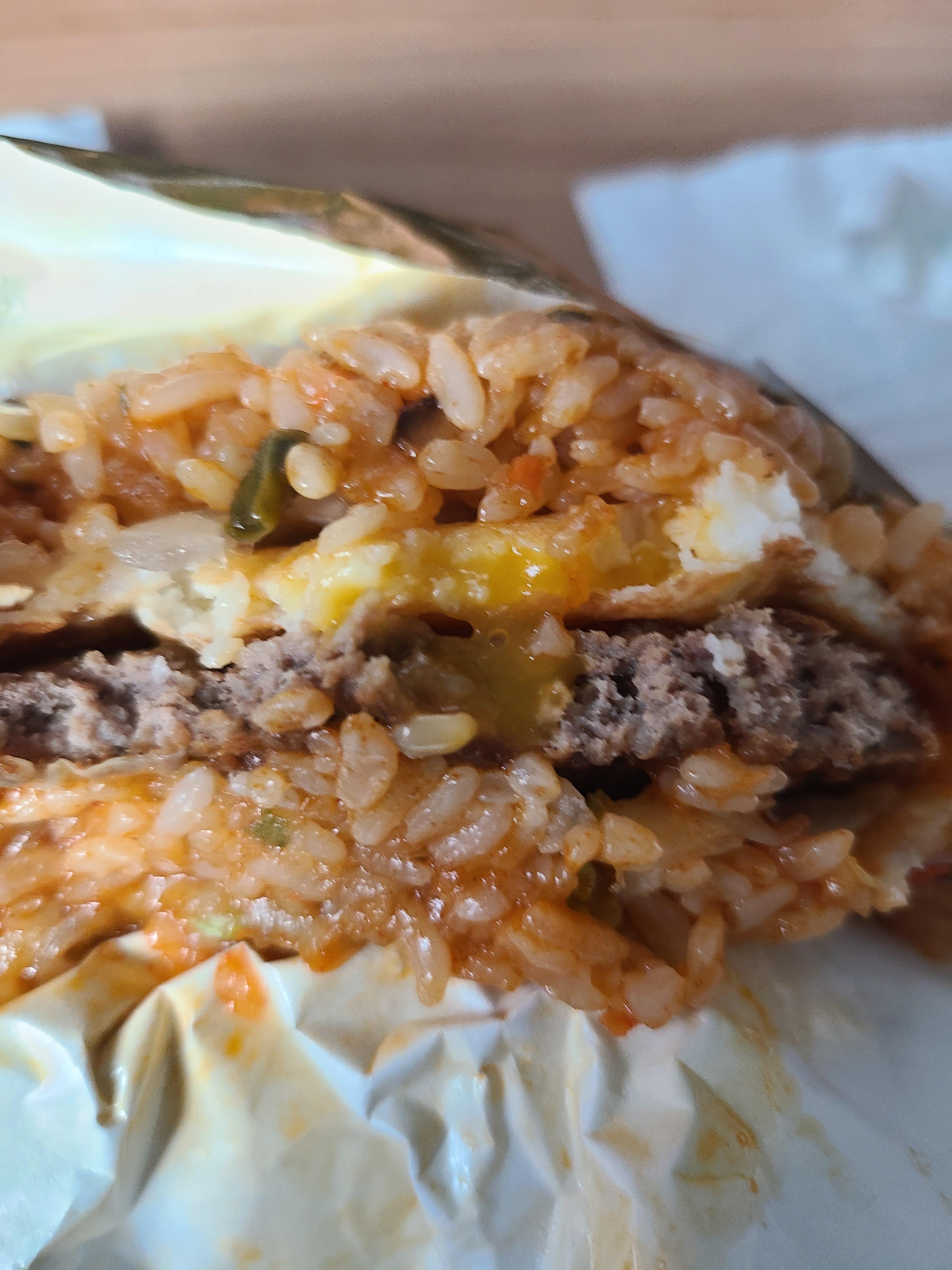 밥 패티가 아래로 축 늘어진 게 보이시나요?