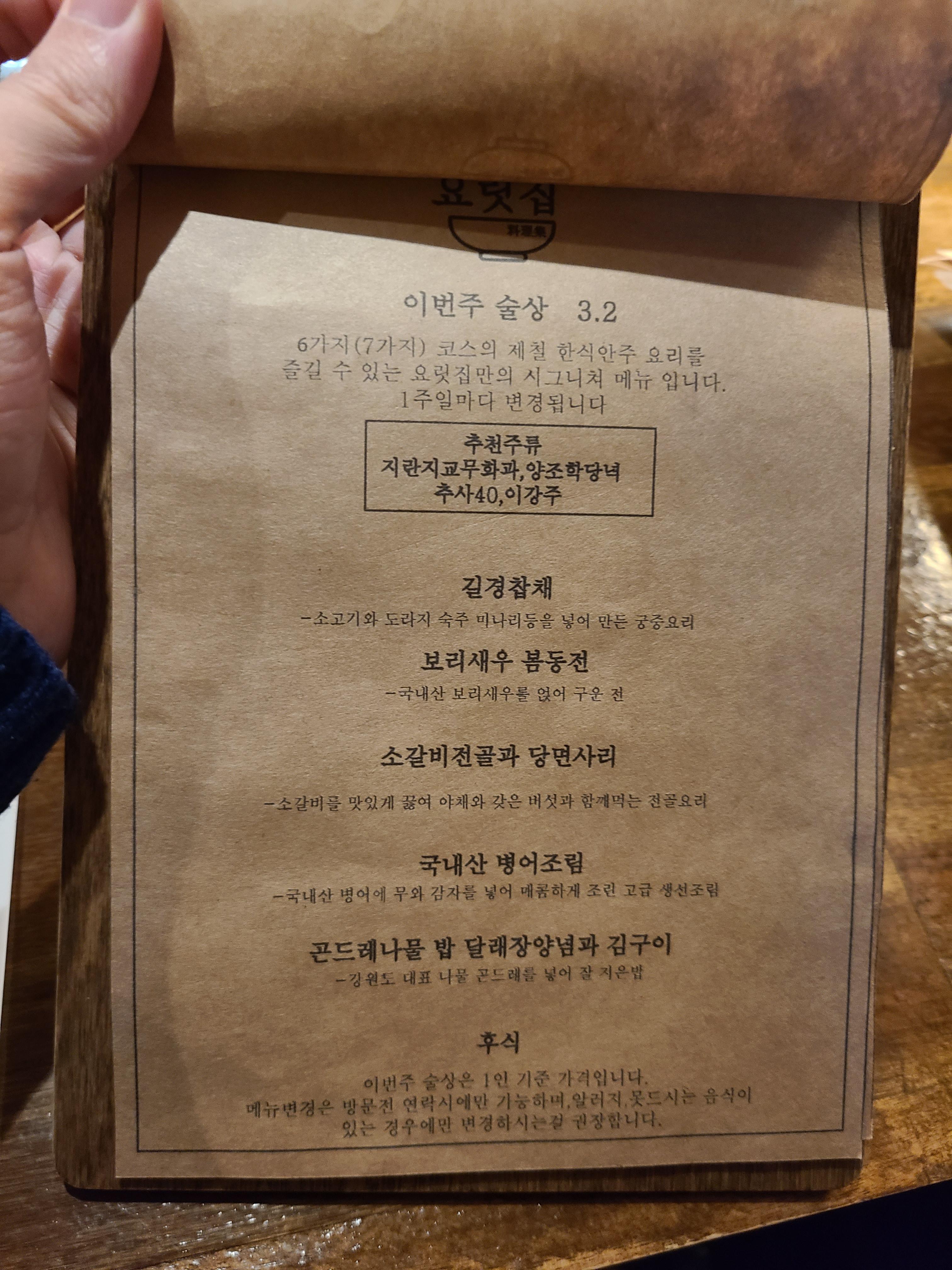 이 코스 메뉴는 매주 바뀌지 않고 고정인 것 같아요.