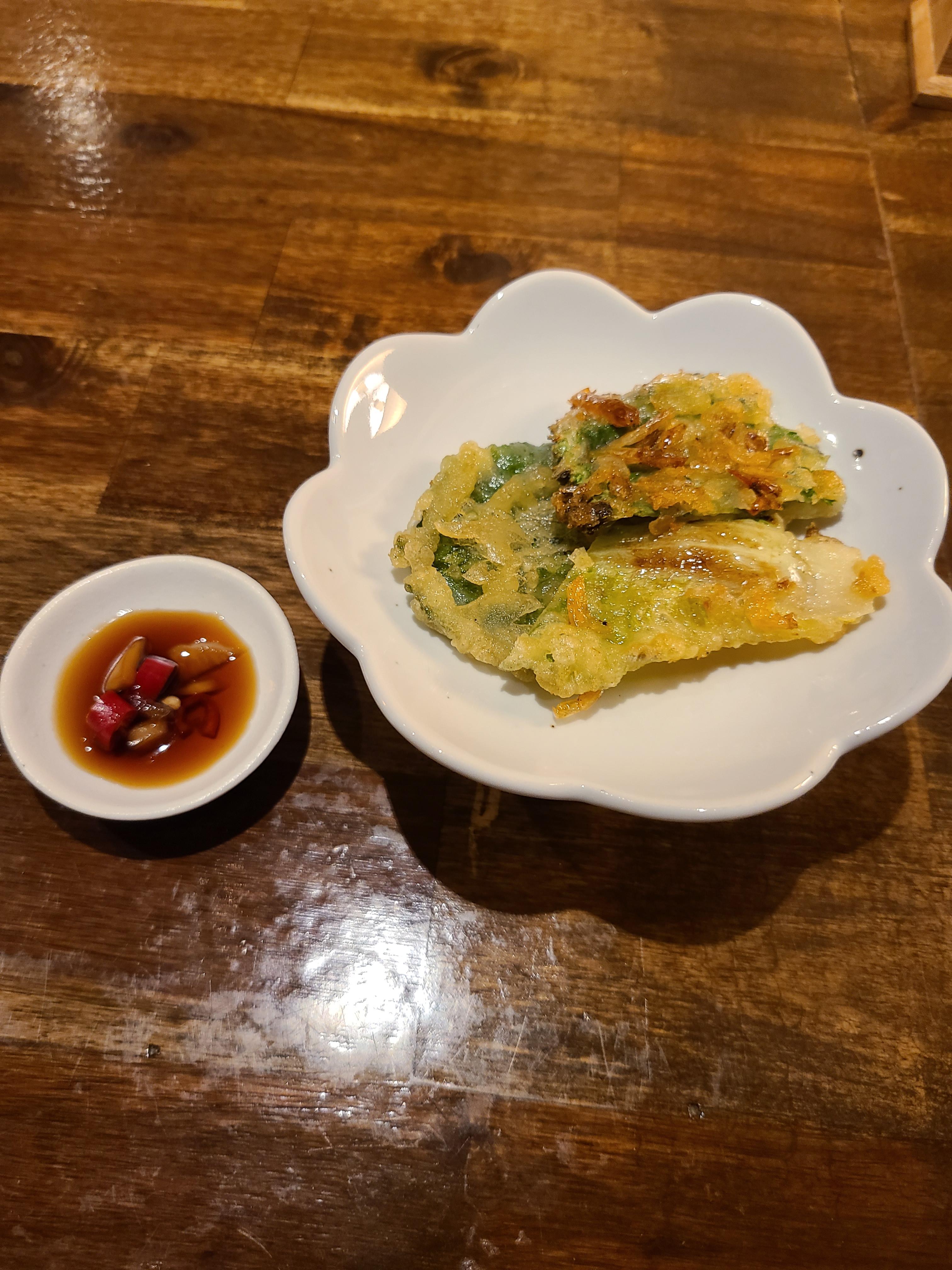보리새우 봄동전인데요, 겉바속촉이라서 너무 맛있었어요.