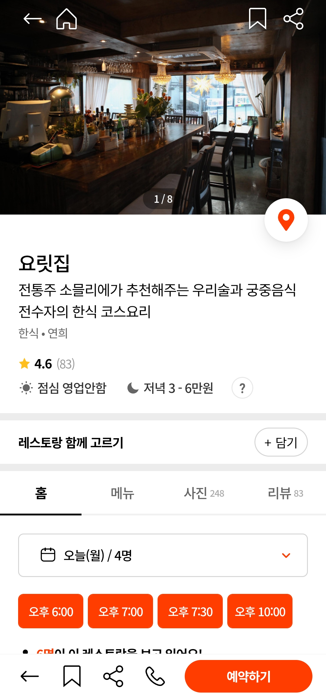 요릿집에 대한 설명이 적혀있습니다.