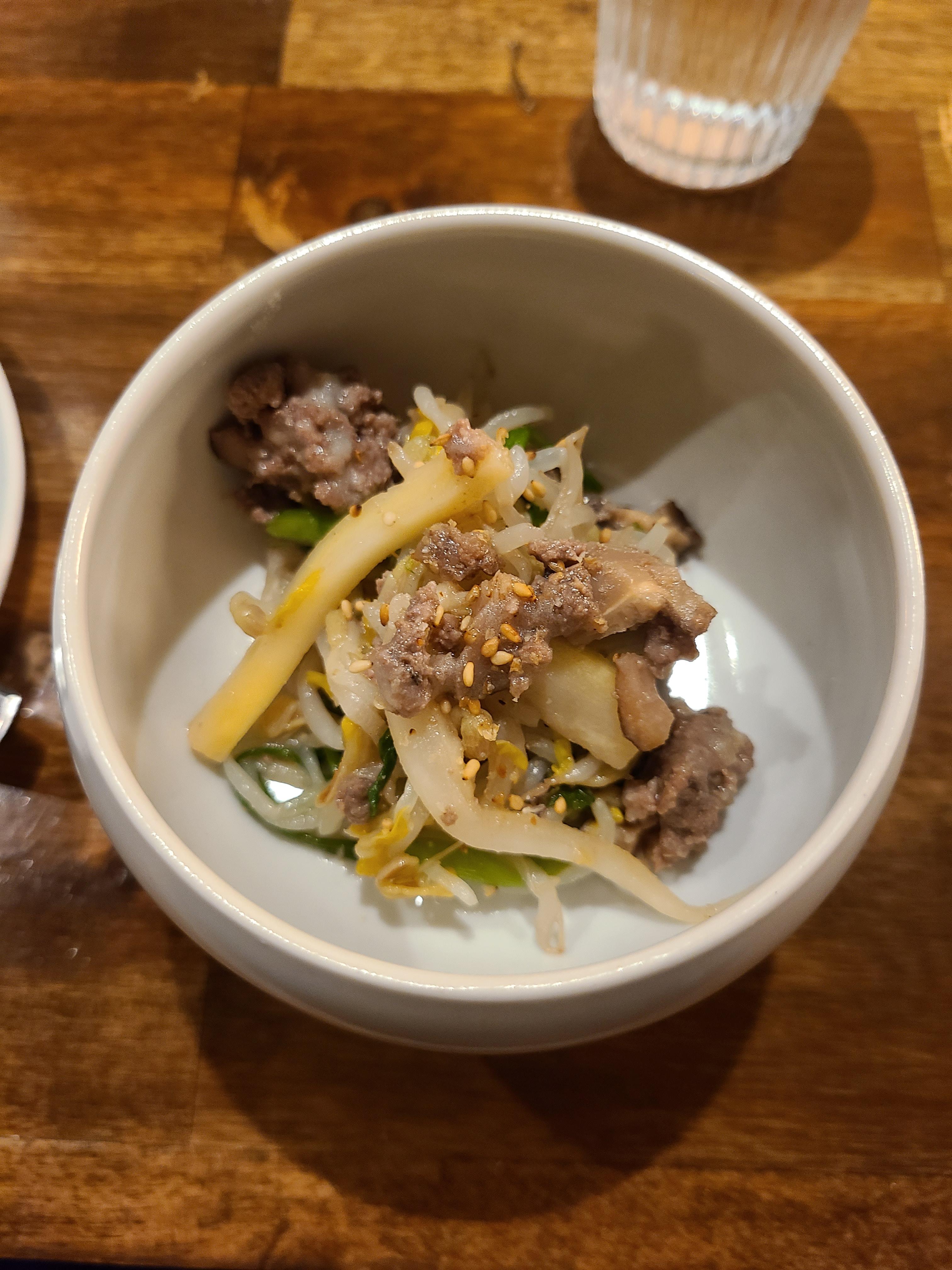 소고기와 도라지, 숙주, 미나리가 들어간 길경찹채예요. 궁중요리라고 합니다.