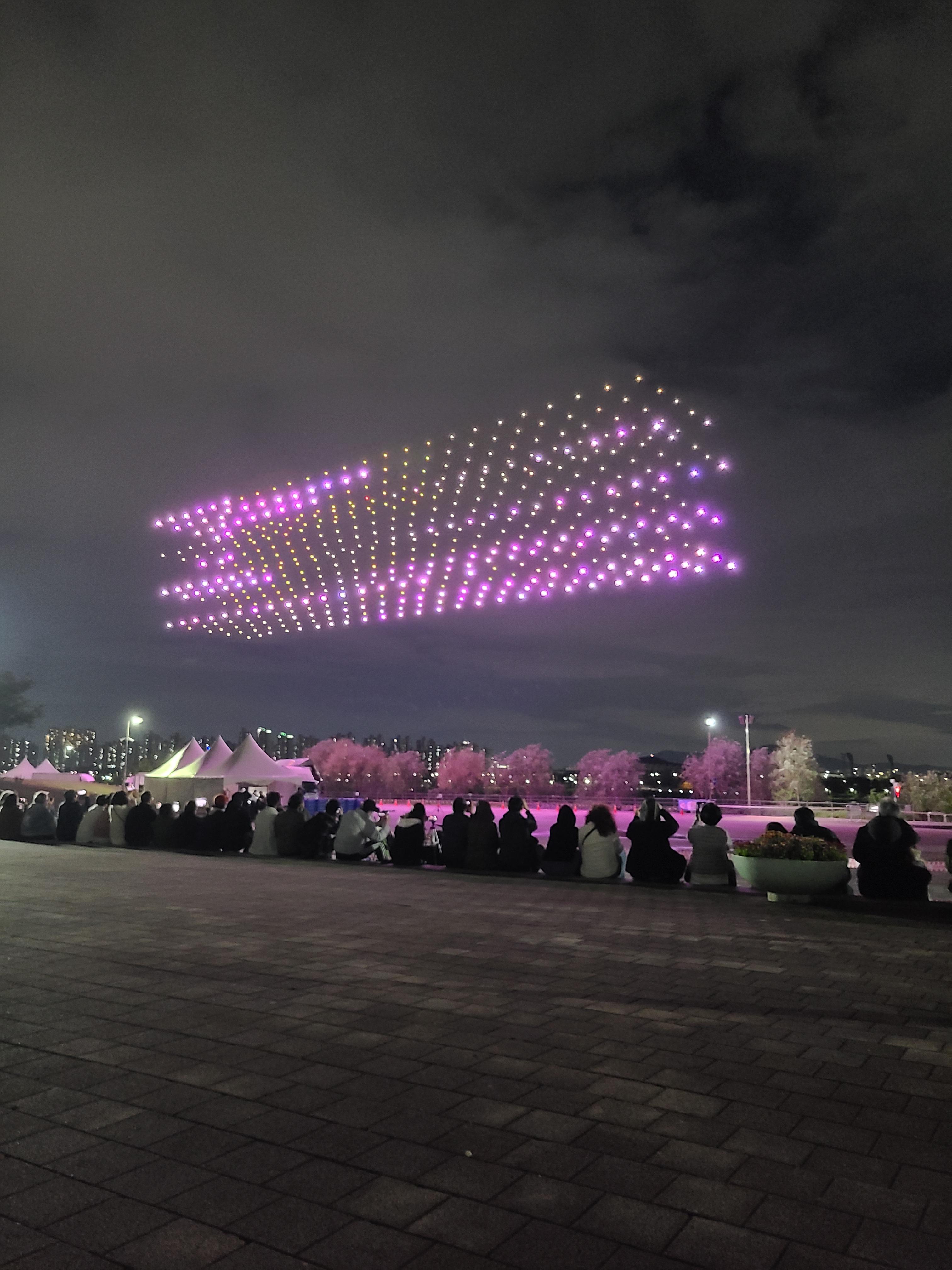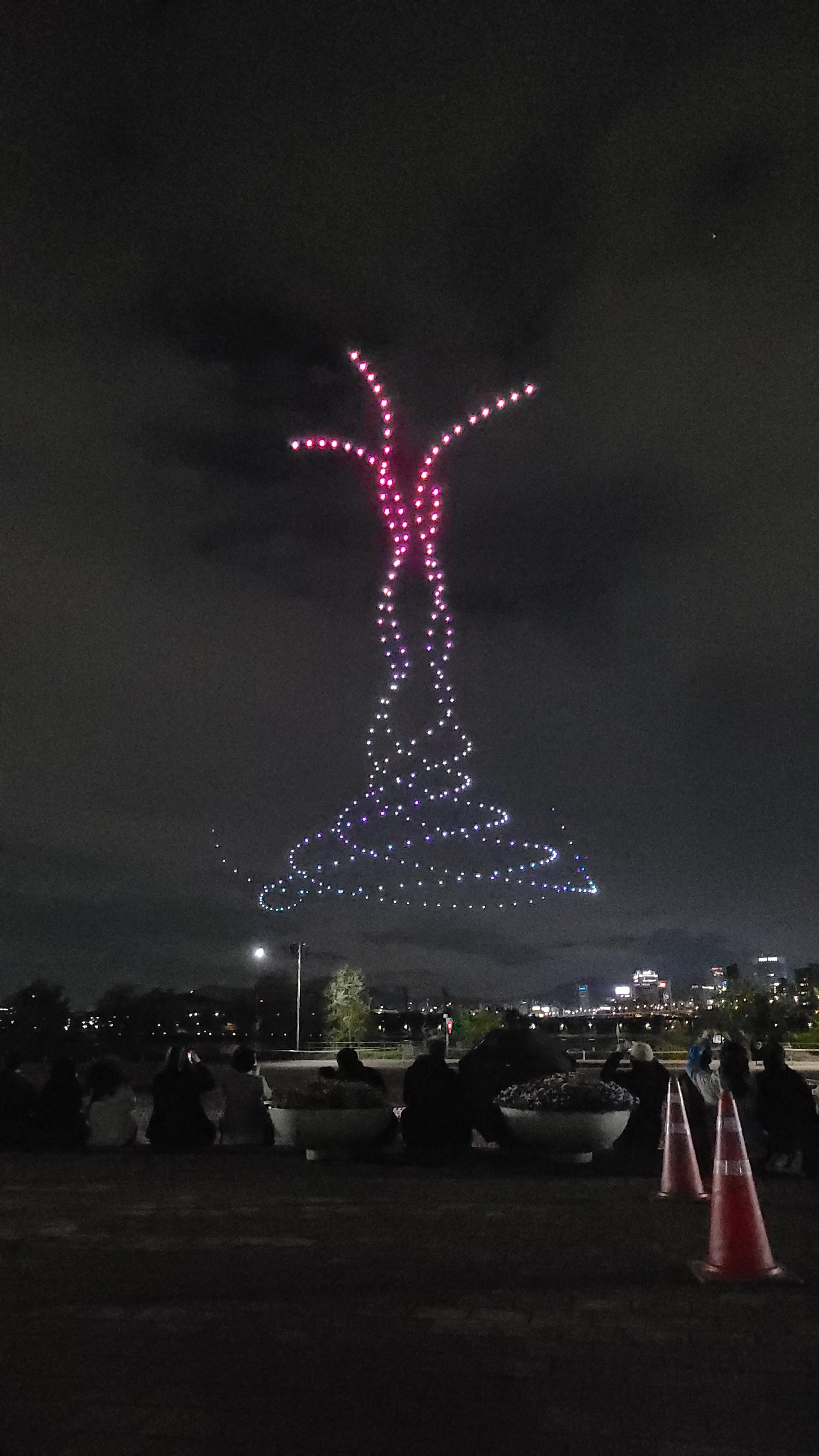집 근처 뚝섬유원지에서 드론쇼를 한다길래 보러 다녀왔다.