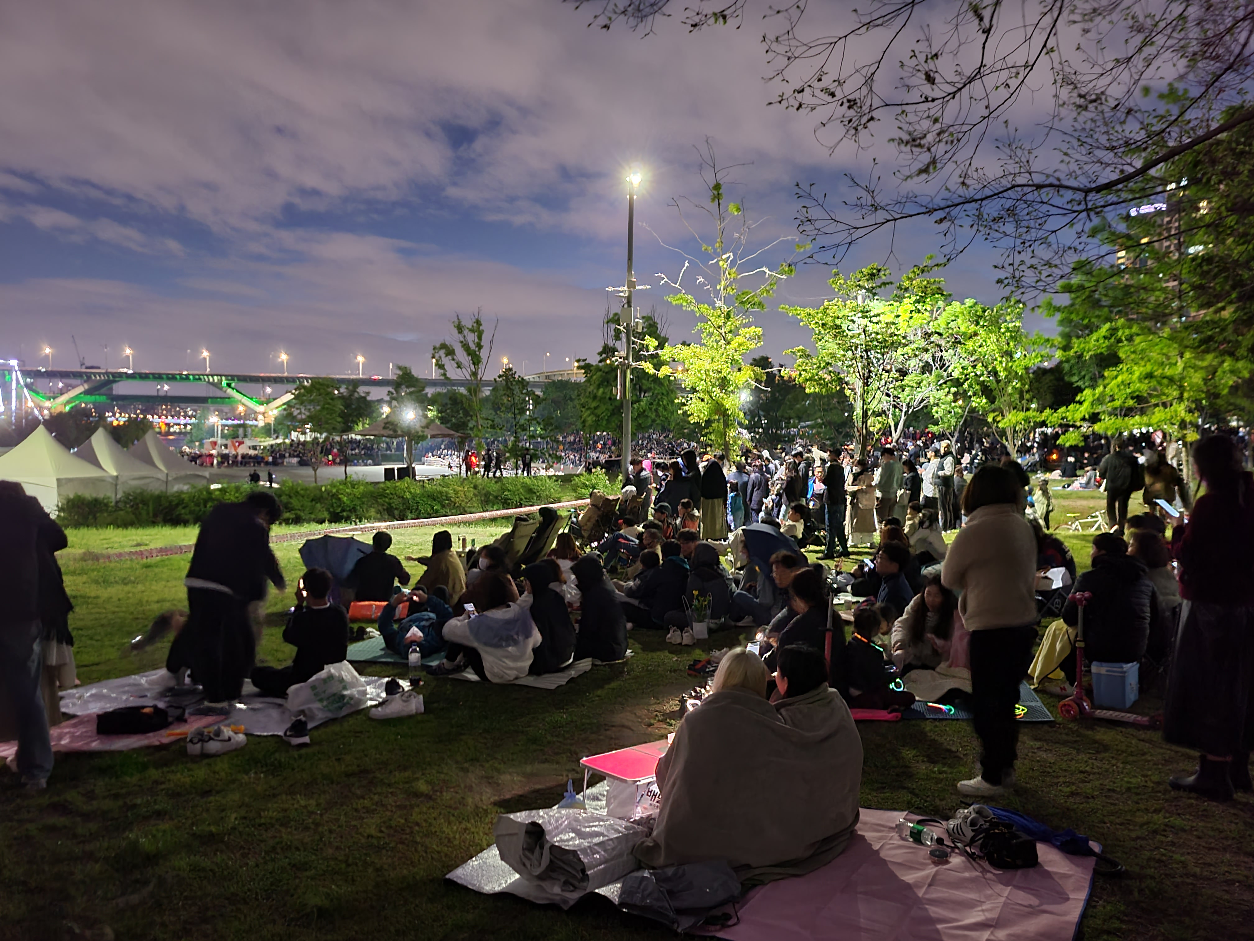 이 많은 인파를 헤치고 앞으로 가니 앉을자리가 있어서 명당에서 편하게 구경했다.