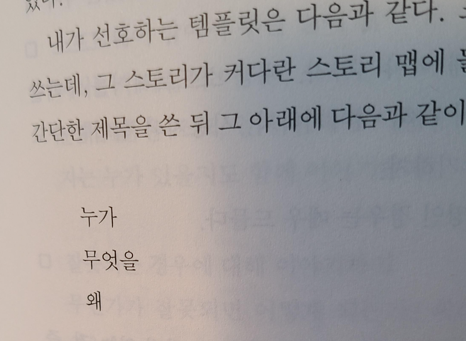 스토리는 "누가(어떤 사용자가)" "무엇을" "왜" 형식으로 쓰면 좋다.