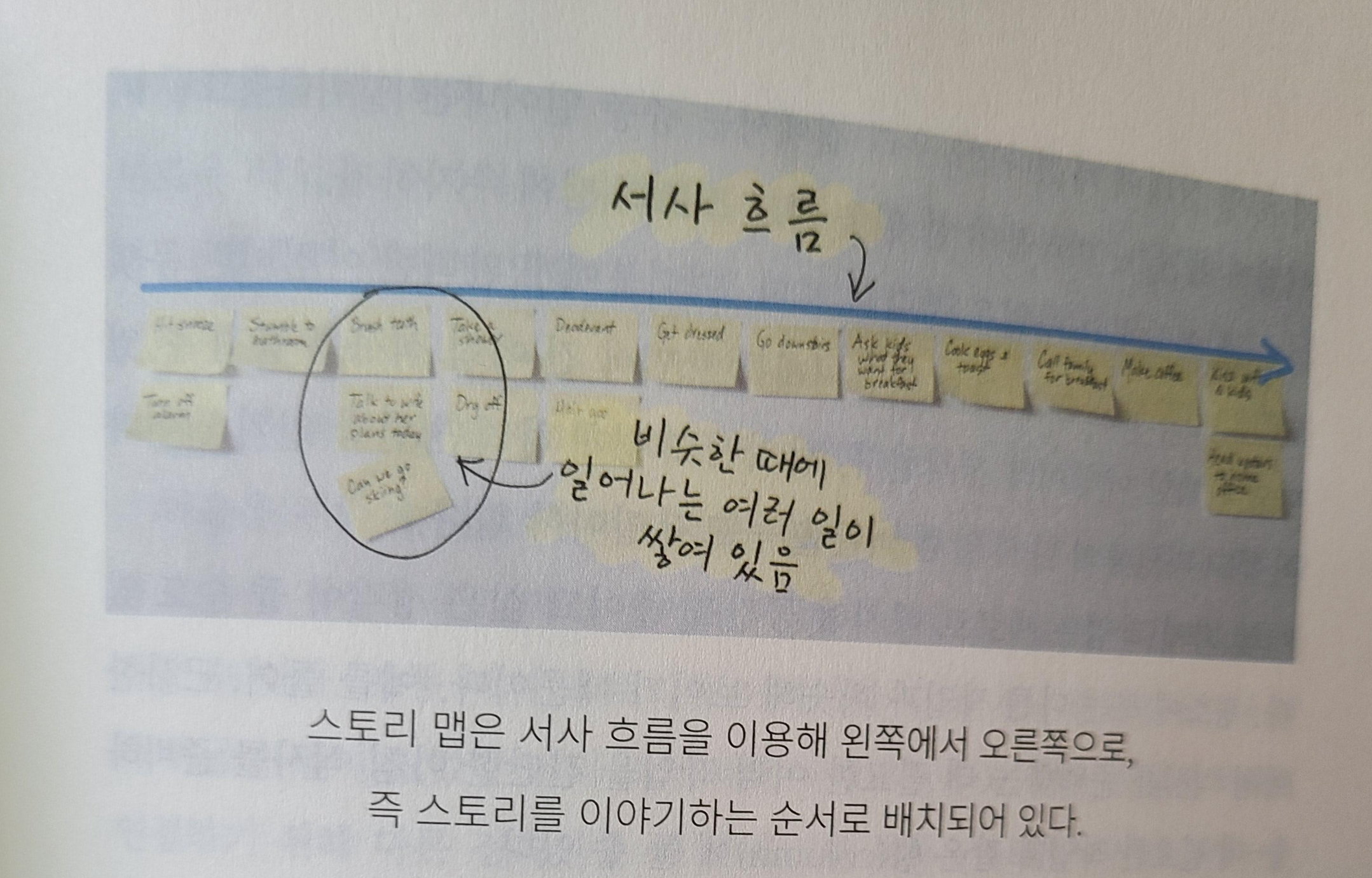 스토리 맵은 왼쪽에서 오른쪽으로 시간 순서에 의해 정리한다.