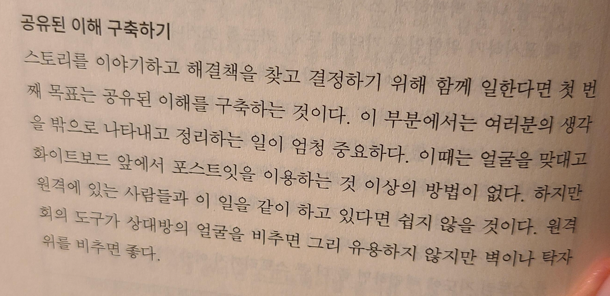 팀과 함께 "공유된 이해" 를 구축하기 위한 도구이다
