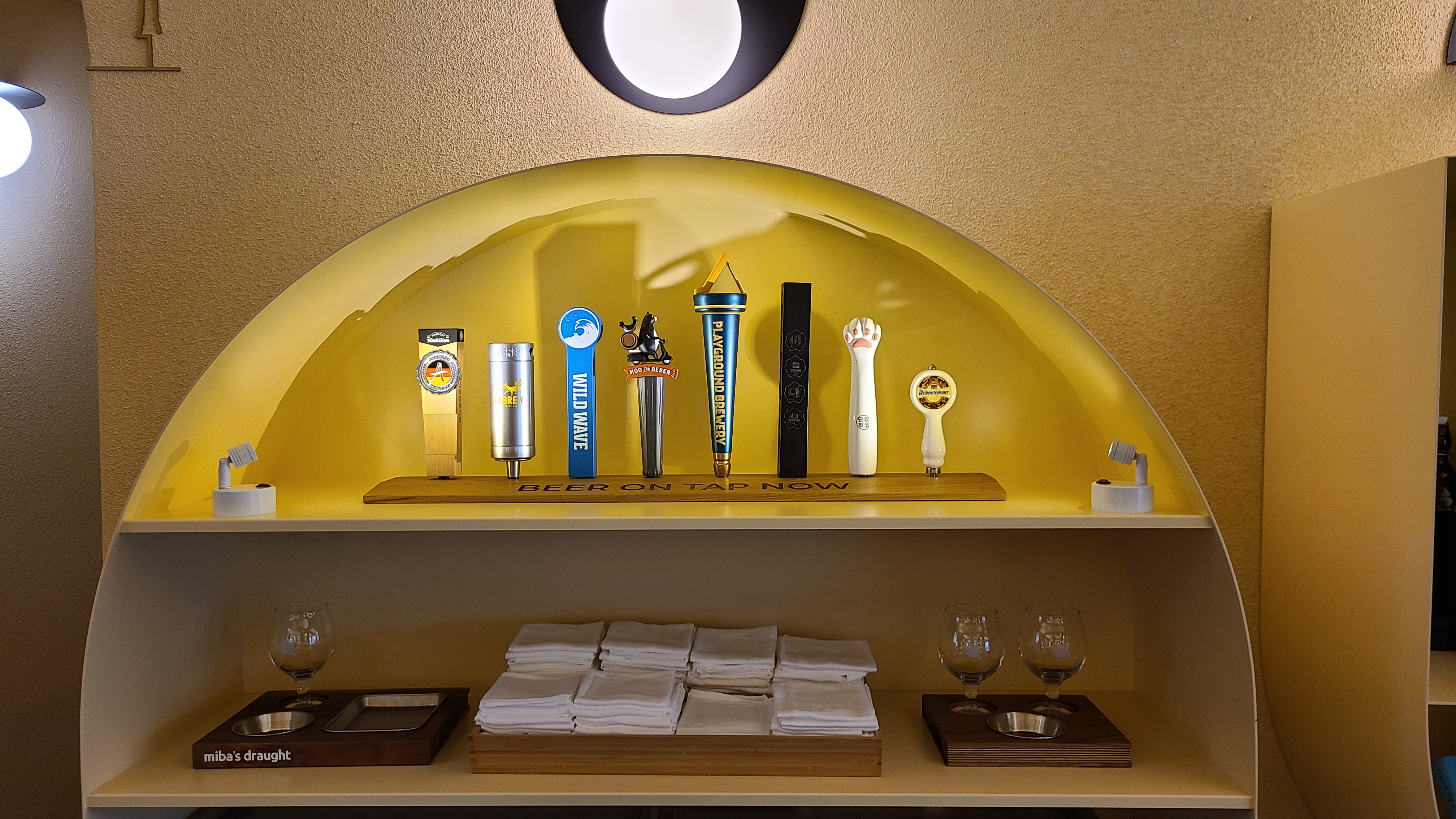 미바 드래프트의 탭 핸들은 미바 드래프트 전용 탭 핸들을 쓰고 계셔서 그런지 한쪽에 파는 맥주들의 탭 핸들들이 모여 있었어요. 개성 넘치는 탭 핸들들이 예뻤어요.