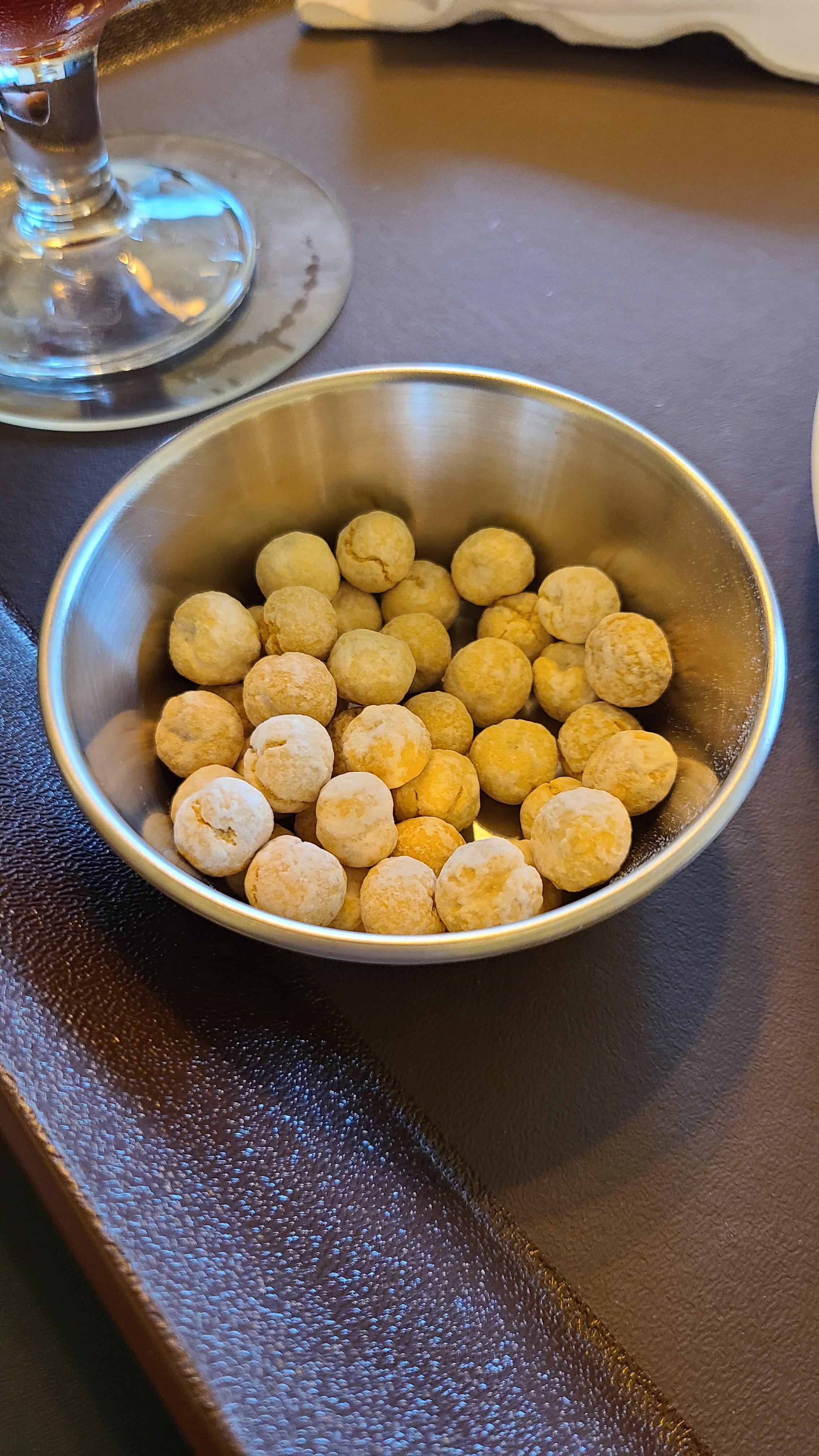 기본 안주는 이런 과자를 주는데요, 겉에 콩고물 같은 게 발려 있어서 달달하이 맛있습니다.
