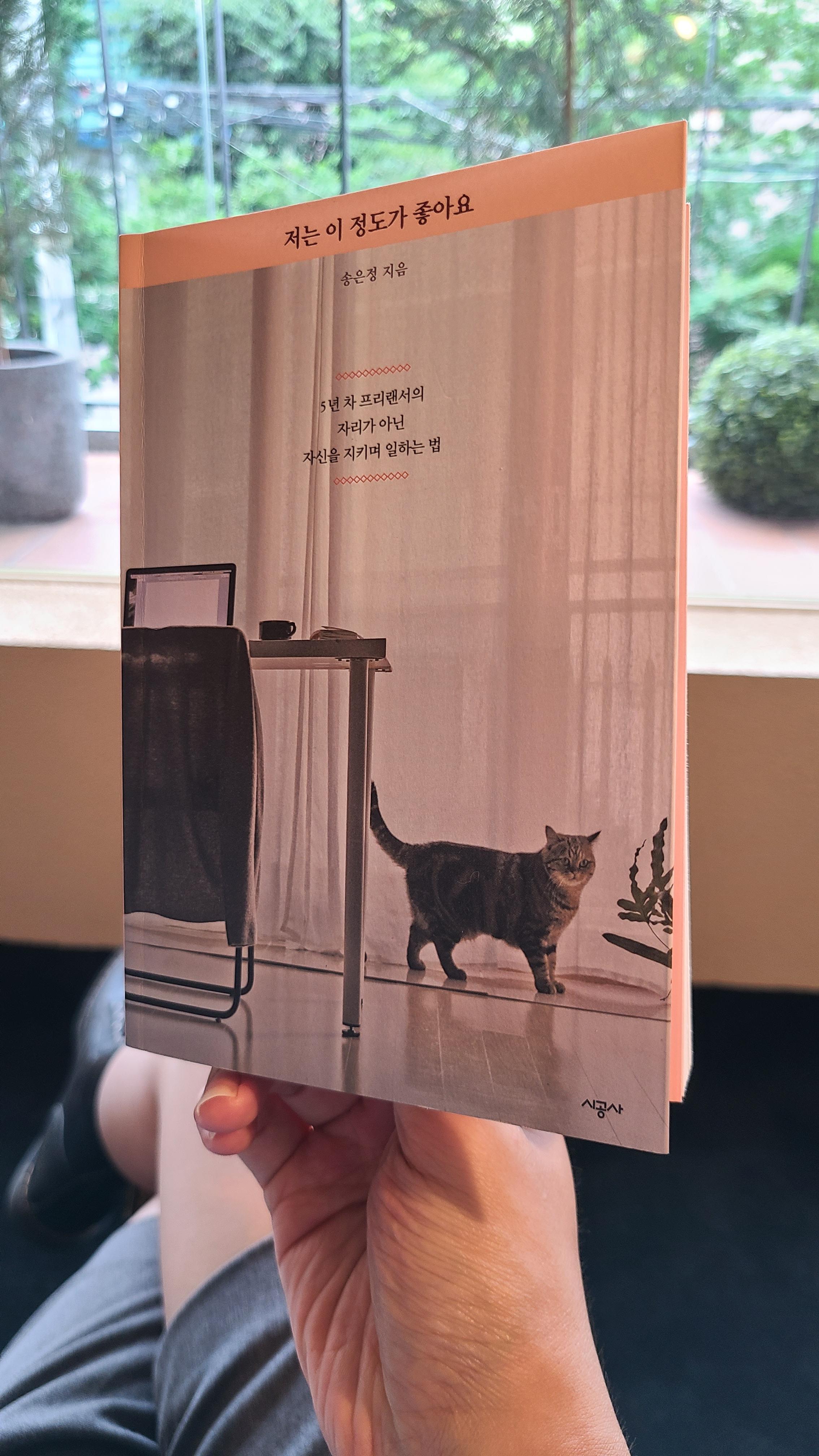 가져온 책을 읽었습니다. 송은정 작가의 "저는 이 정도가 좋아요"라는 책입니다. 여행 책방을 운영하시다 그만두시고 글을 쓰는 일에 대한 얘기를 담은 에세이에요.