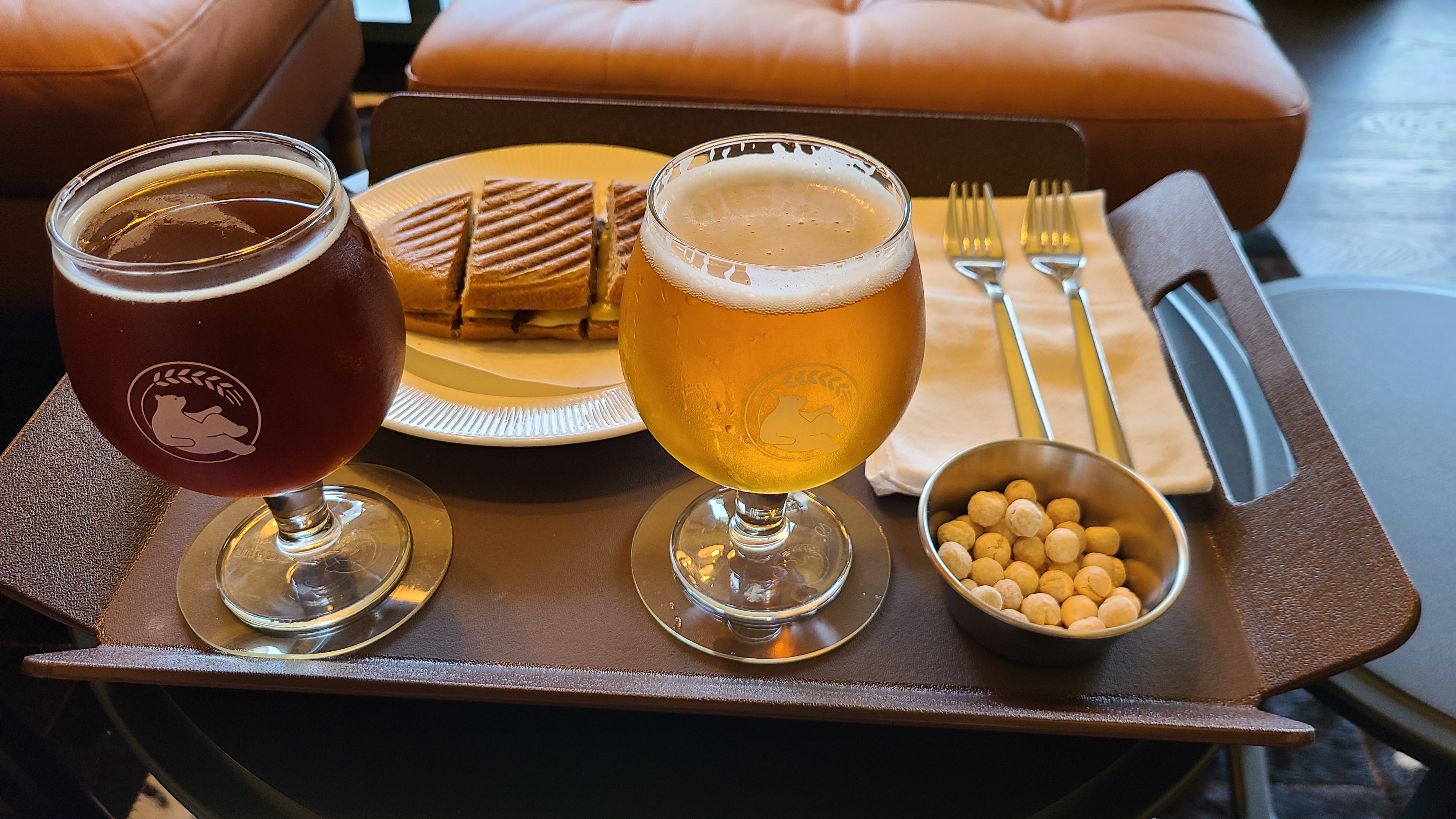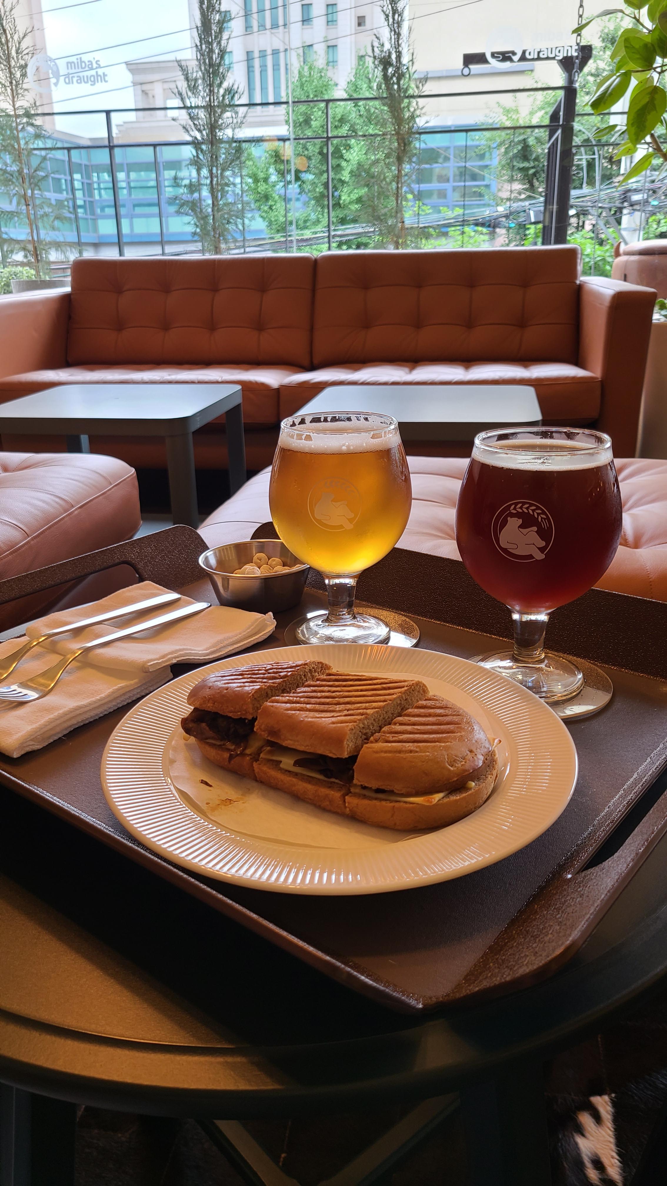 파니니는 빵이 푹신, 부드러웠고 치즈와 버섯이 맛있었어요. 간단하게 배고픔을 달래기에 좋은 메뉴였어요. 맥주도 맛있었어요!