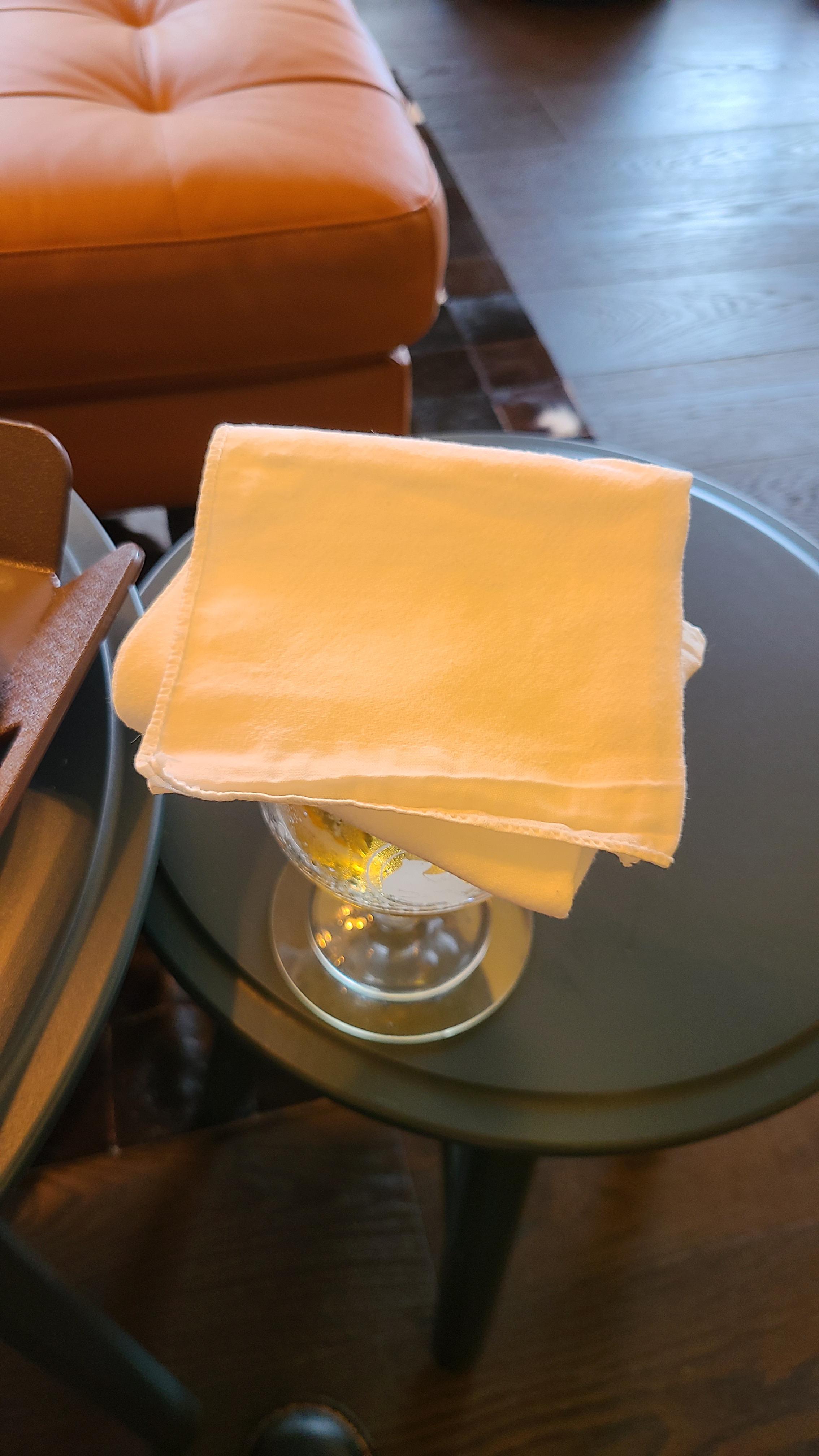 벌레가 자꾸 꼬여서 맥주 위에 천을 올렸어요 ㅋㅋ 이 가게 컨셉 중 하나가 쓰레기를 만들지 않는다는 것인데요, 일회용 냅킨을 대체한 천을 사용하고 계셨어요. 매번 세탁하여 재활용하시는 정성이 대단하십니다.