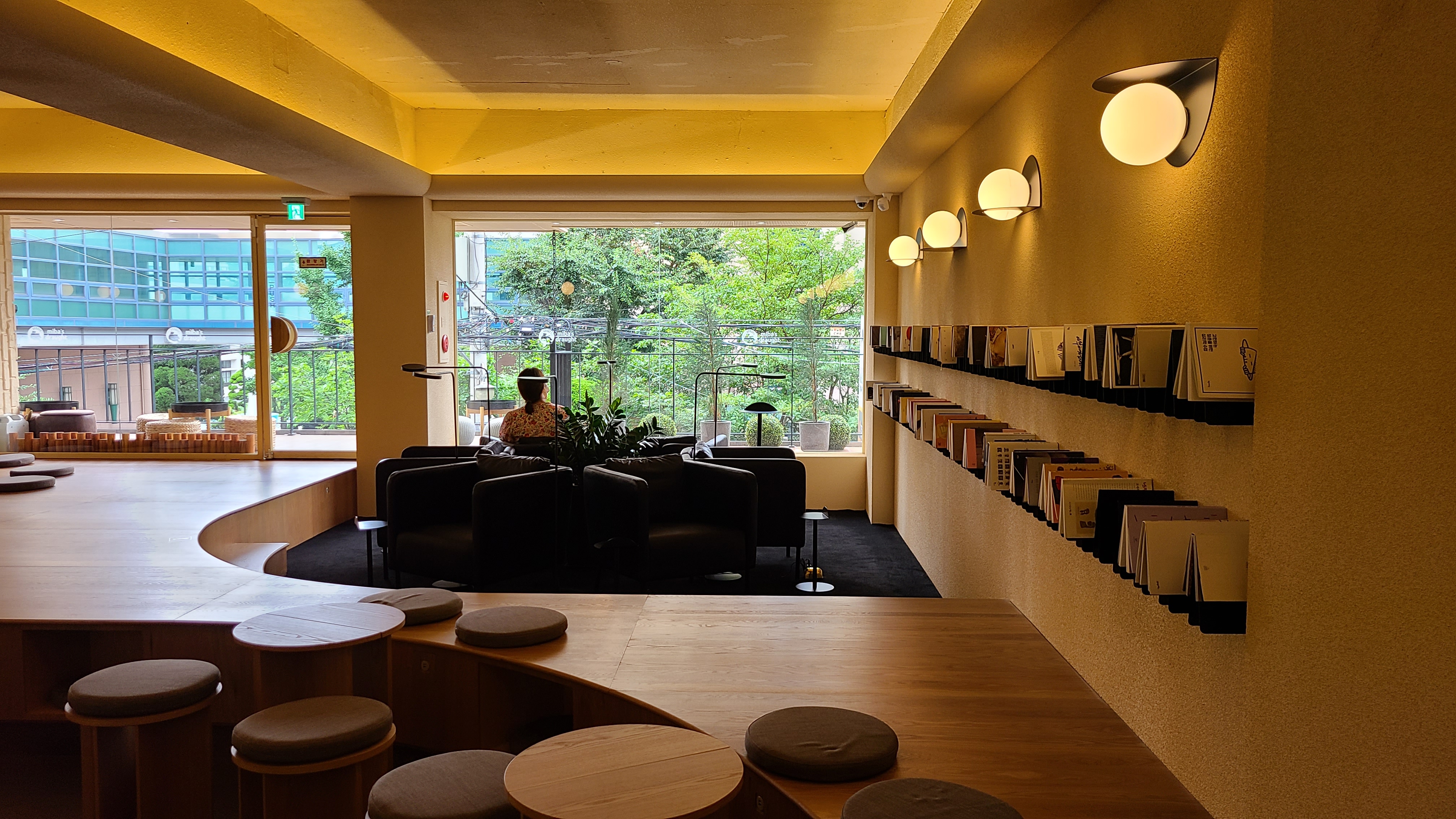 여기 1인용 자리에 한번 앉아보고 싶었어요. 자리 옆엔 개인용 스탠드 불을 켤 수 있어서 책 읽기에 좋았어요.