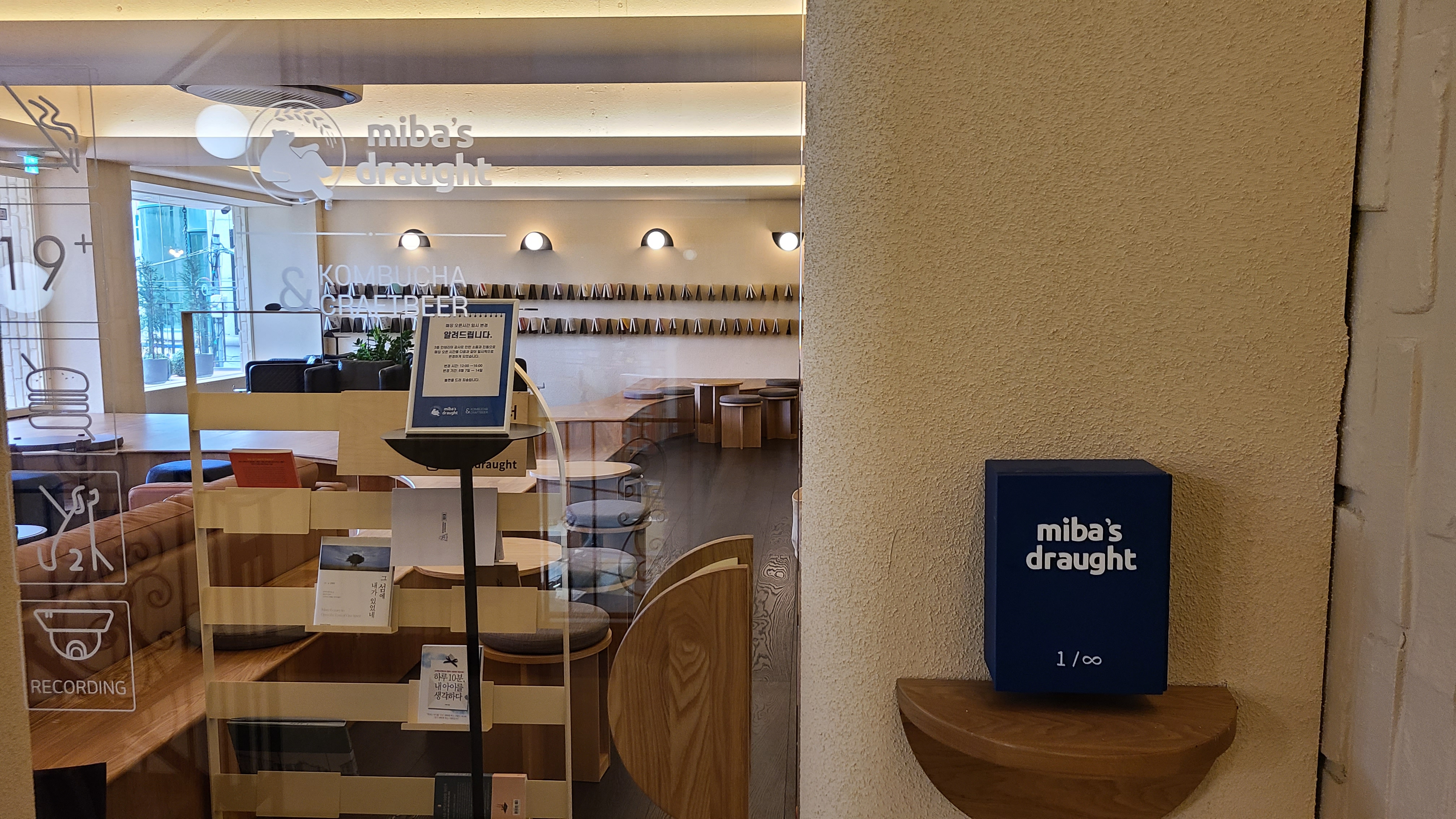 건물 밖에서 보이는 내부 모습으로도 미바 드래프트의 내부가 예쁜 걸 느낄 수 있었습니다.