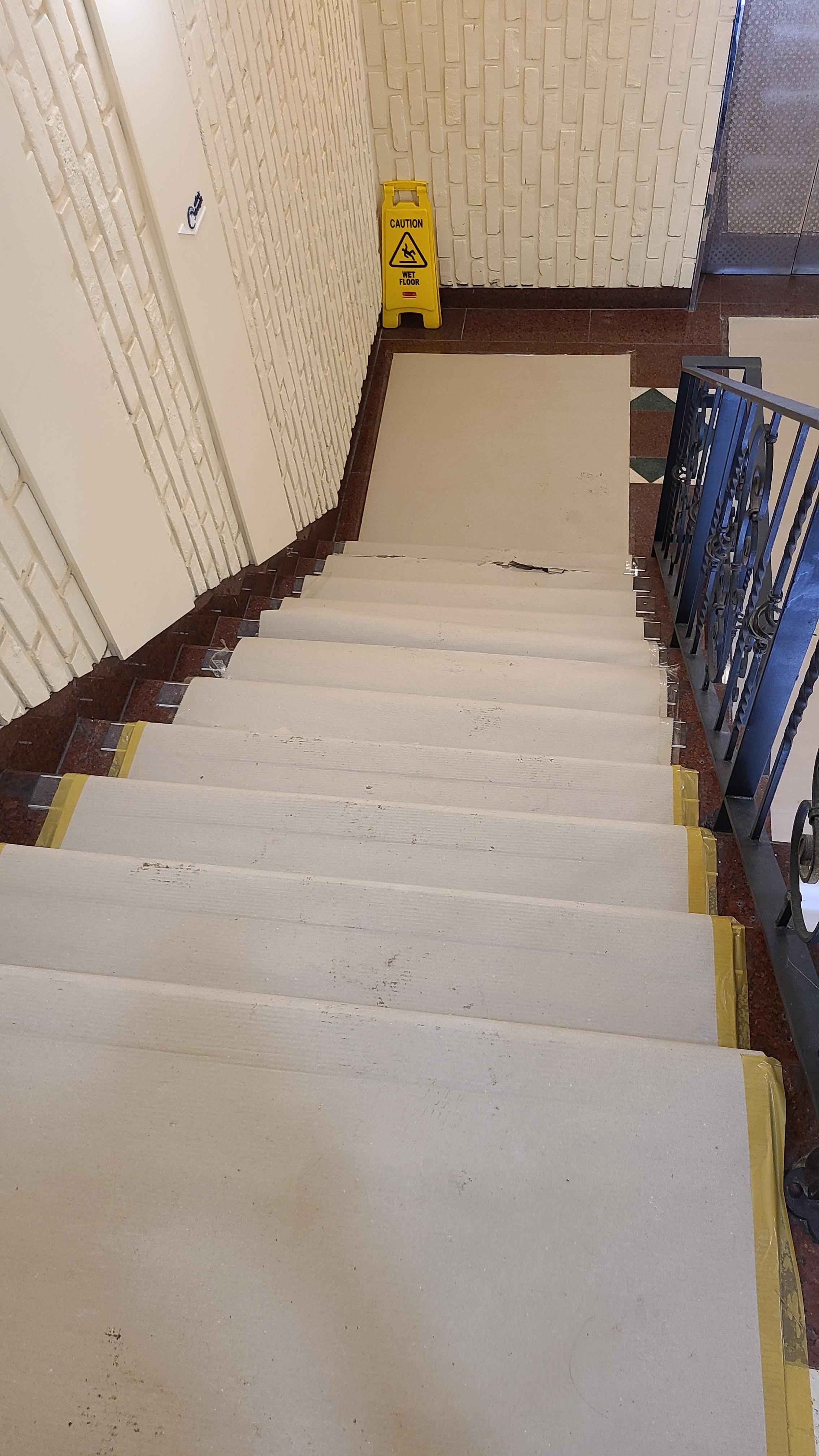 계단은 미끄러지지 말라고 골판지 같은 것이 붙어 있었는데