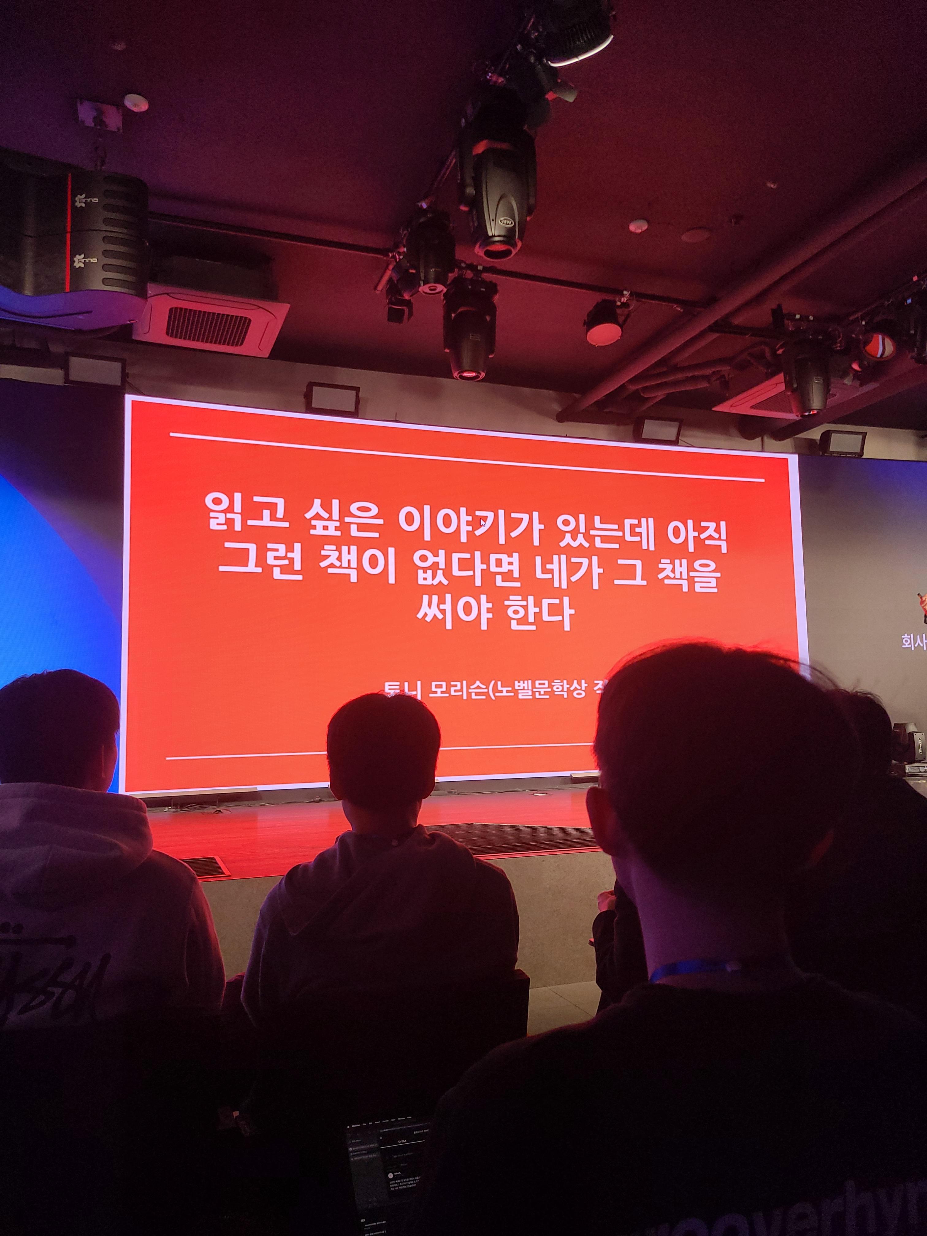 마곡 진짜 멀더라. 평소보다 일찍 퇴근하고 갔는데도 살짝 늦었다. 굉장히 많은 사람들이 있었다. 앞에서 듣고 싶어 앞의 빈자리를 찾아 앉았다.