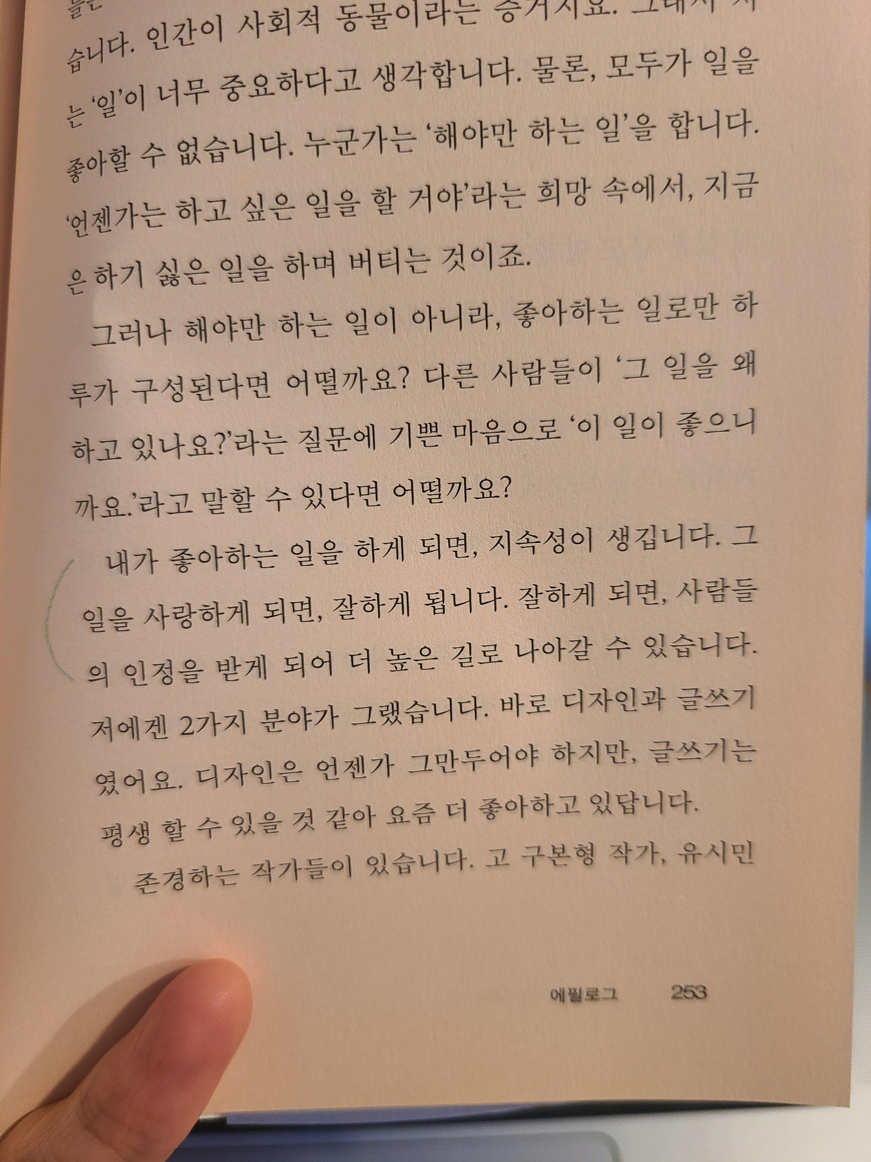 마지막 장이 가장 와닿았다. 조쉬님은 나와 생각이 비슷하신 것 같다. (저번에 강연 때도 들었는데 그리스인 조르바 책이나 송길영씨의 이야기를 인용하시는 것도 나와 비슷한 취향이라 생각했다.)