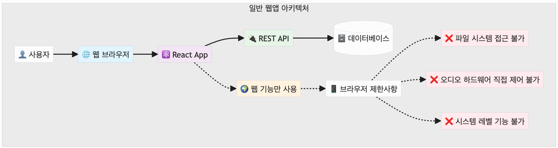 | 성능 오버헤드 | 브라우저 엔진이 메모리를 추가로 소비 (Chromium 기준 100~200MB+) |