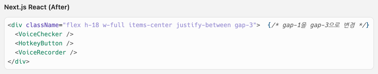 요청: "VoiceChecker, HotkeyButton, VoiceRecorder 사이 간격이 너무 좁아요. 간격 늘려주세요"