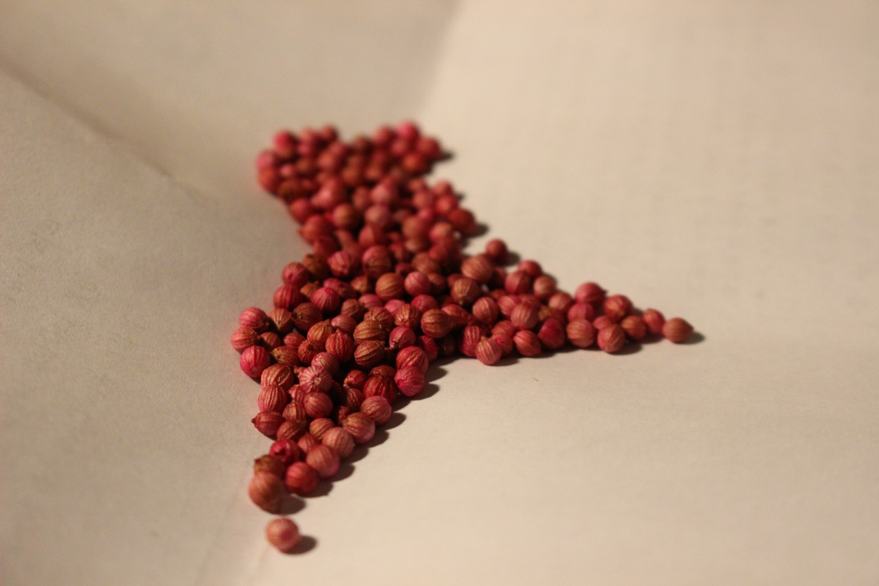 고수 씨앗은 굉장히 크기가 작고 생김새는 미니어처 양파 같은 느낌입니다. 색깔은 예상치 못한 빨간색이었는데요, 씨앗에도 이렇게 색깔이 있을 수 있구나 알게 되었습니다. 고수 씨앗이 담긴 포장지 안쪽에 코를 갖다 대고 냄새를 맡아보았는데요, 굉장히 신기하게도 블랑 맥주의 향을 맡는 것 같았습니다. 지금까지는 블랑의 향은 오렌지 껍질의 향이라고 생각하고 있었는데, 고수 씨앗의 냄새를 맡으니 블랑의 향은 오렌지 향이 아니라 고수 씨앗의 향이 아닌가 싶었습니다. 냄새 자체는 굉장히 상큼하고 향기로웠는데 고수 잎을 먹었을 때의 싸한 느낌은 나지 않았습니다. 오히려 과자를 먹었을 때 느낄 수 있는 달달한 향이 나는 것 같기도 했습니다.