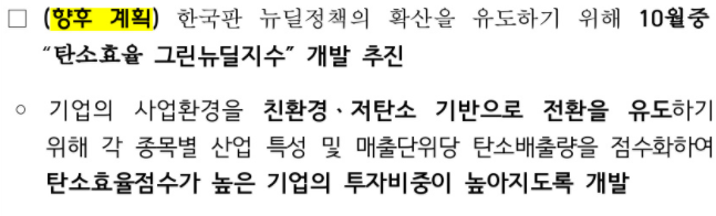 그리고 한국거래소의 보도 자료에는 추후에 발표할 "탄소 효율 그린뉴딜지수" ETF도 있습니다.
