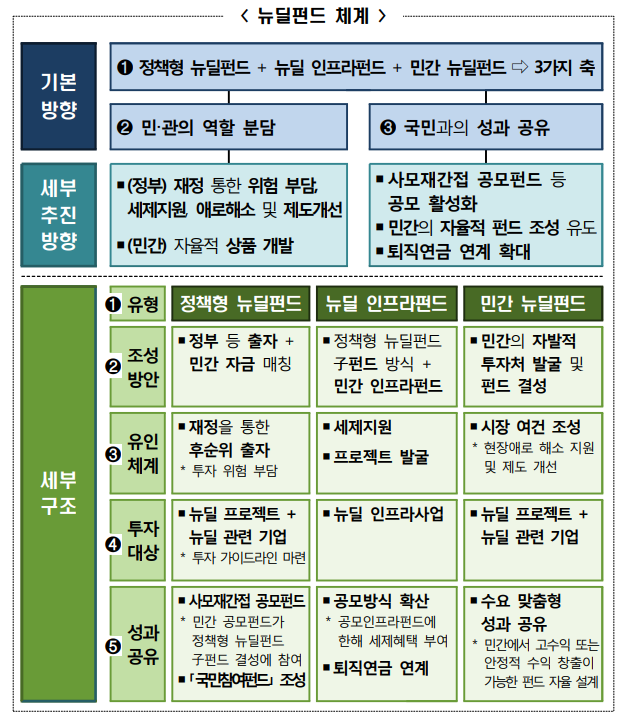 2020년 9월 3일 정부는 한국판 뉴딜 전략 회의에서 뉴딜 펀드를 발표했습니다.