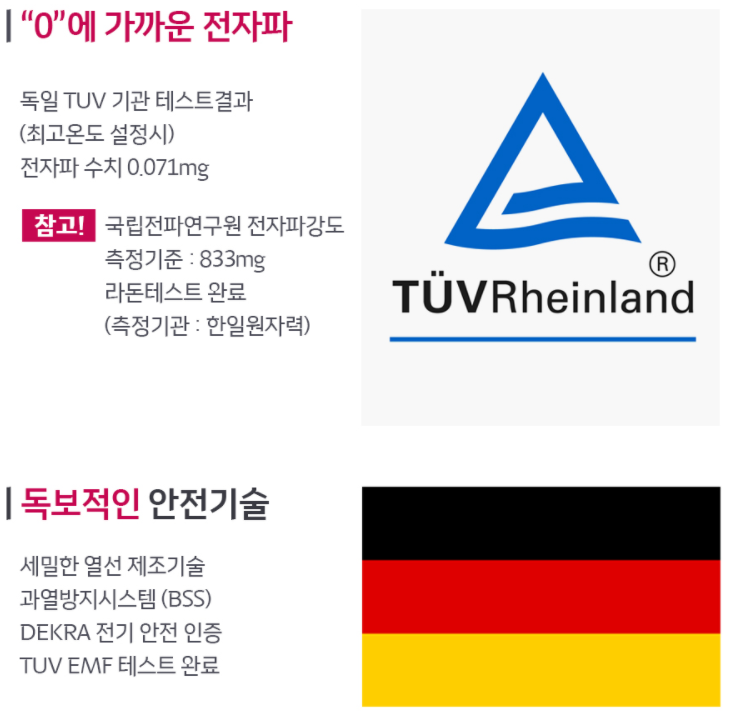 보이로는 독일 TUV 기관 테스트 결과 전자파 수치가 0.071mg로 굉장히 낮습니다.