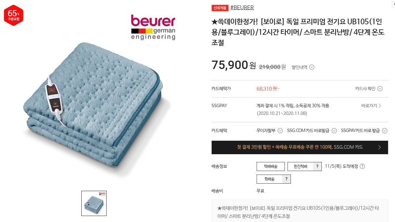 어머니께서 보내주신 1인용 보이로 전기장판은 네이버에서 최저가로 104970에 팔고 있습니다.