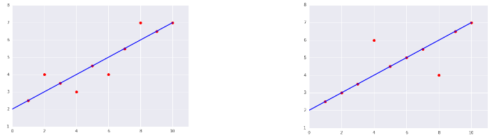 위의 예시에서 MSE가 높은 모델은 무엇일까요? 정답은 오른쪽 모델입니다.