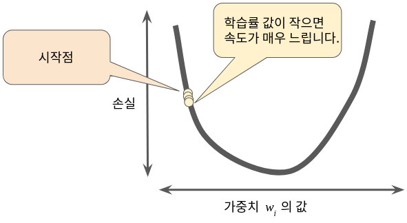 학습률이 너무 작다면 학습 시간이 너무 오래 걸립니다.