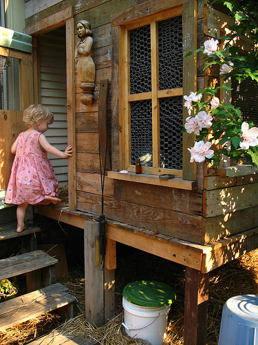 1000268201_693b08cb0e.jpg#3 A little girl climbing the stairs to her playhouse .