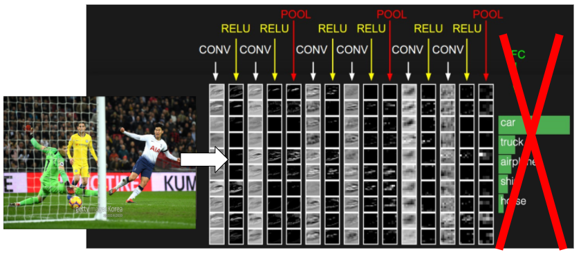하지만 실제로 Image Captioning에서는 사진에서 "골키퍼, 공격수, 골대..." 등과 같은 물체가 무엇인지를 추출하진 않습니다. 왜냐하면 우리가 하고 싶은 건 Object Detection이 아니라 Image Captioning 이니까요.