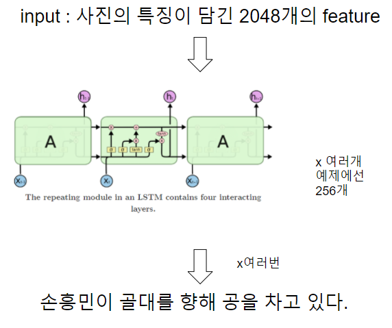 우리가 학습하는 건 LSTM이고요, InceptionV3 즉 CNN은 이미지 인코더에 불과하다는 걸 알 수 있습니다.