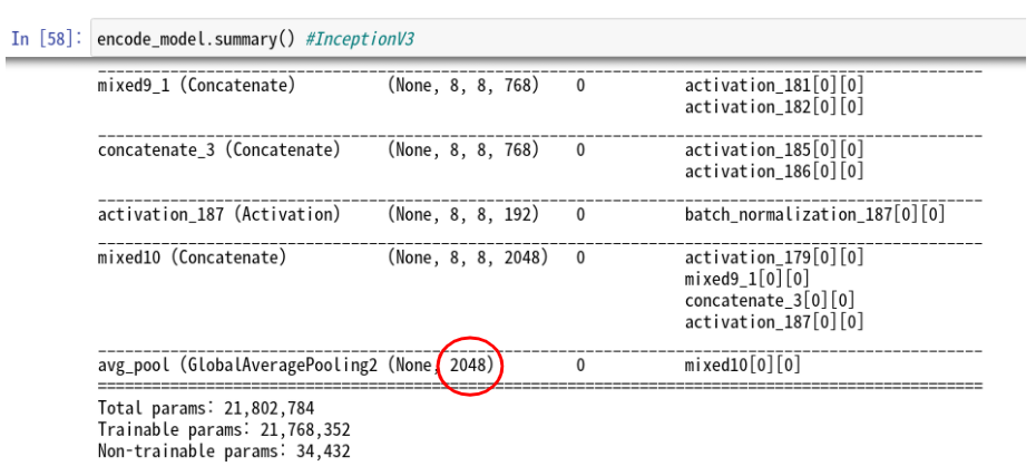 encode_model.summary() 함수를 이용하면 코드에서 불러온 InceptionV3의 구조를 확인할 수 있는데요