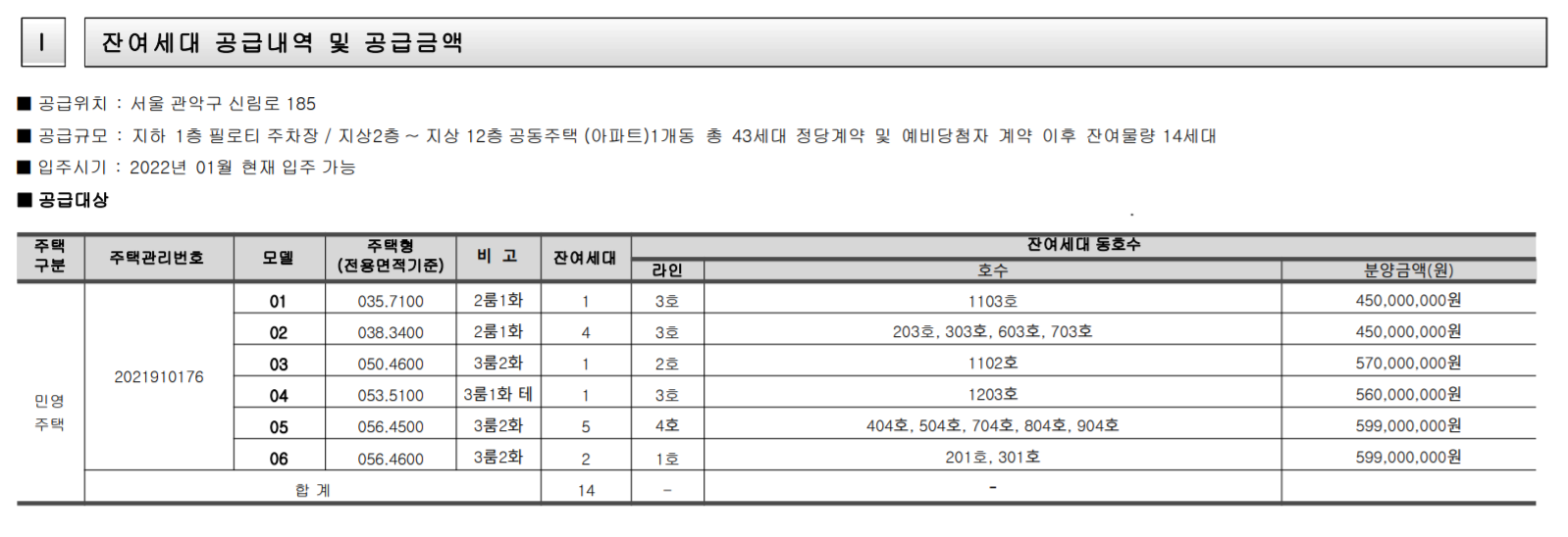 무순위 청약::신림스카이아파트 줍줍 모집공고