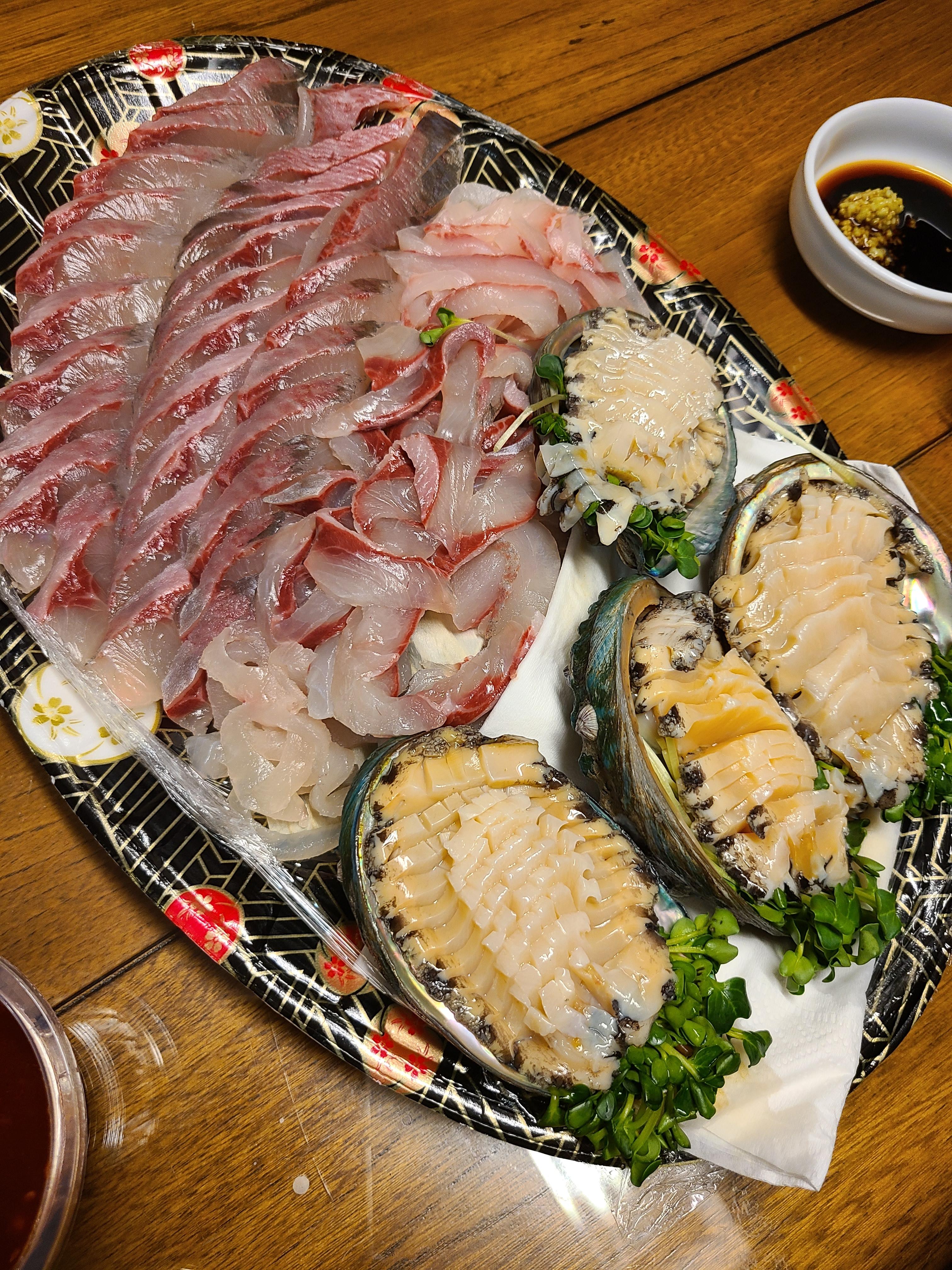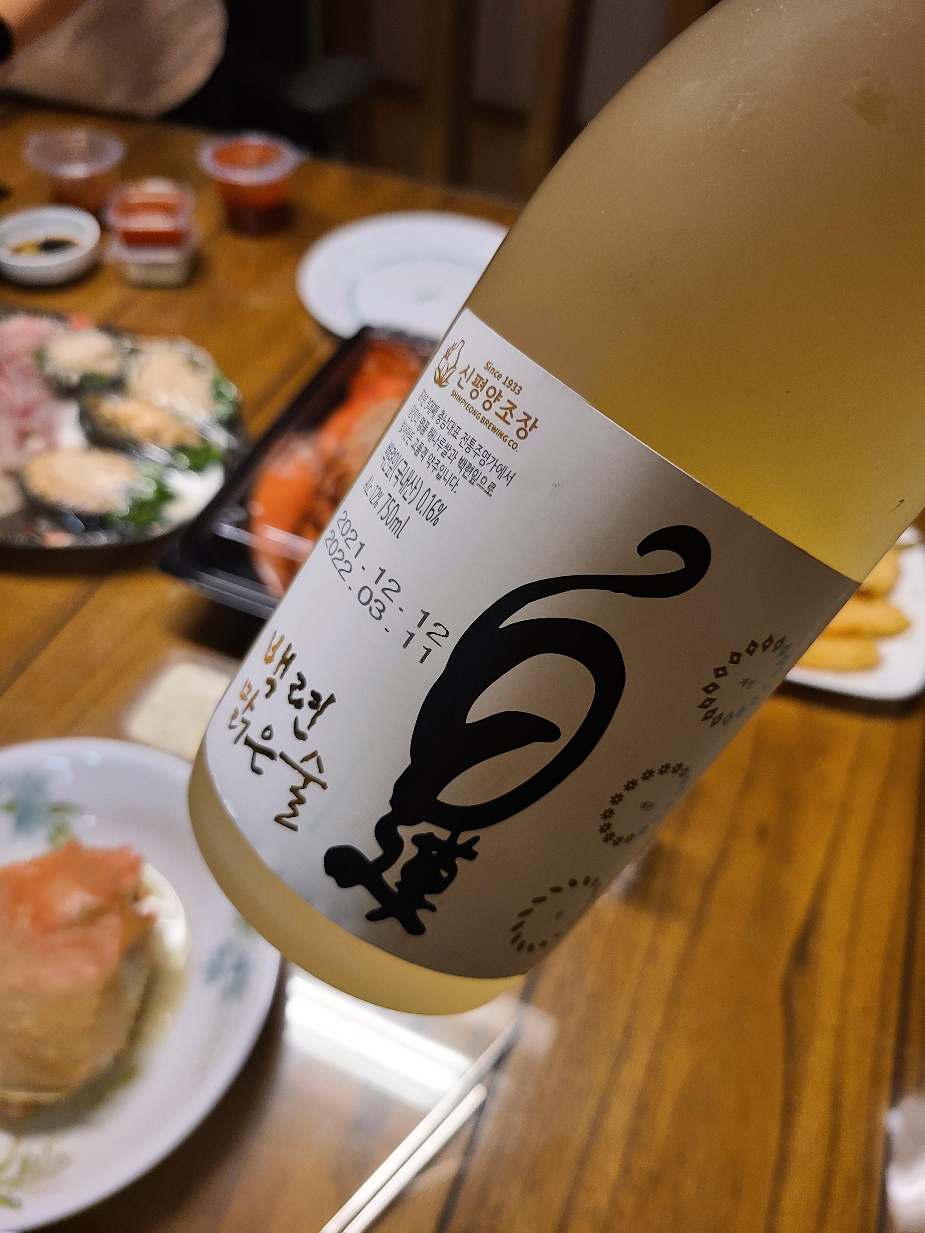 어머니께서 좌동 재래 시장에서 사 온 해산물들과 백련 맑은 술을 함께 먹었습니당!