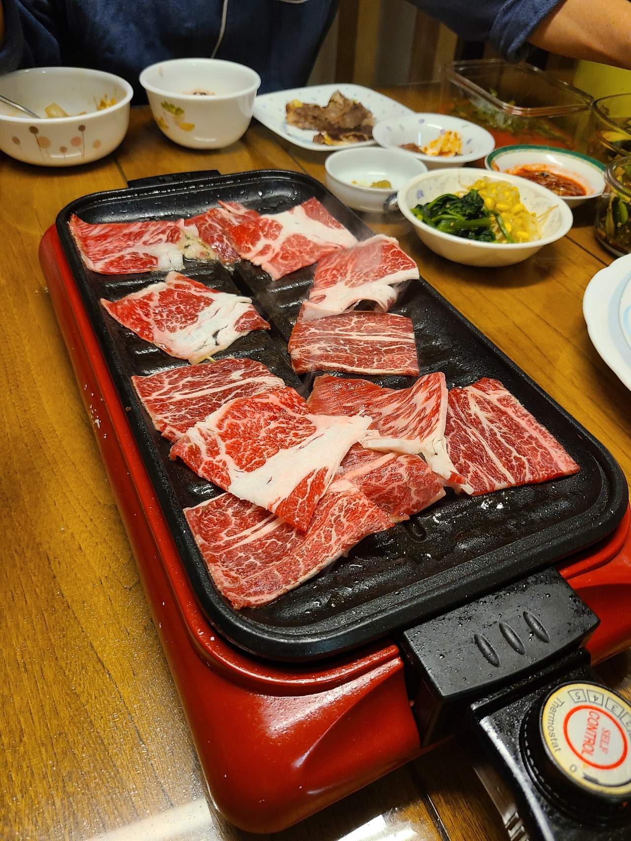 어머니는 식탁 위에 불판을 가열하고 얇은 등심을 한 점씩 올리셨다.