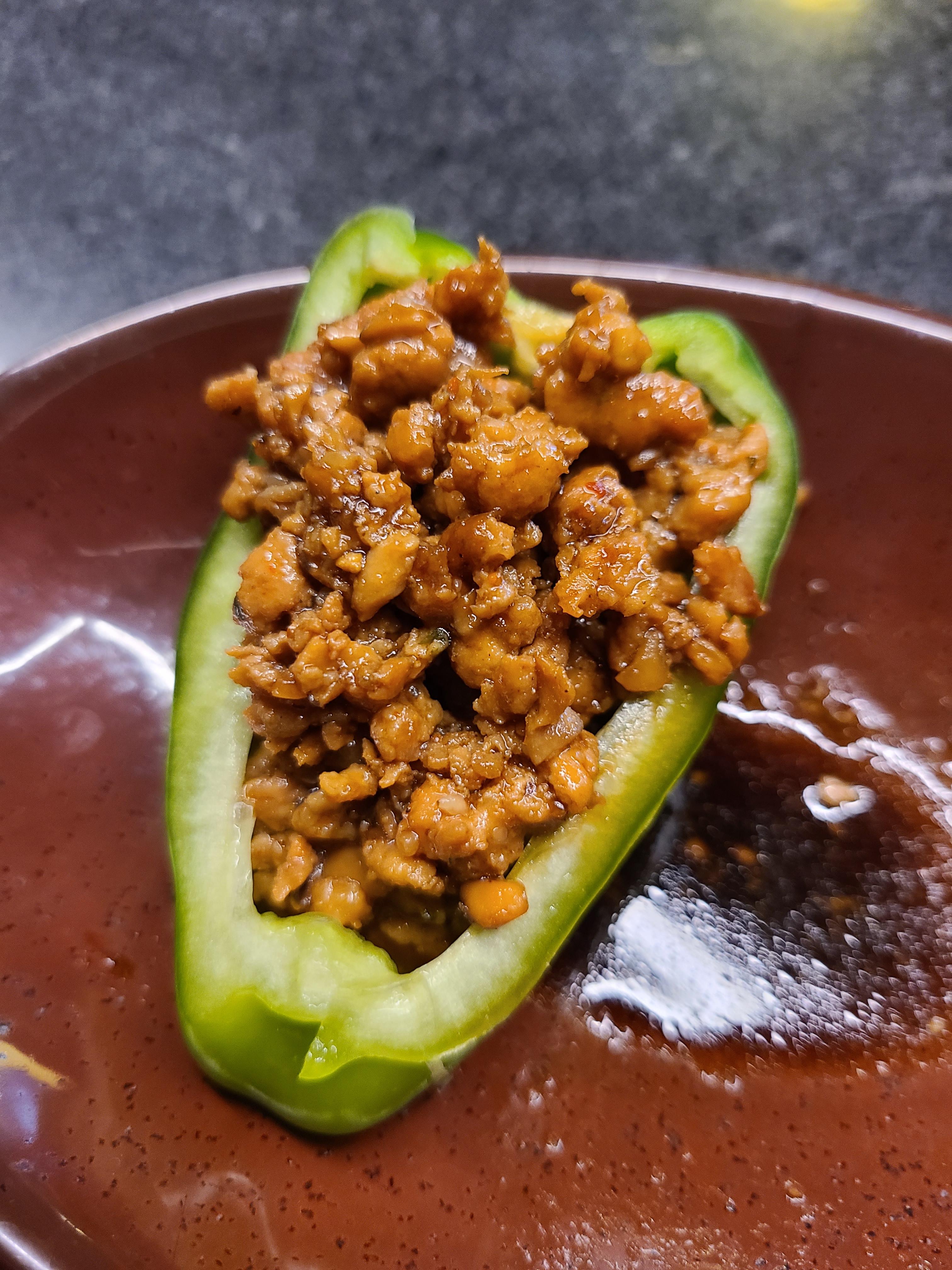 이후에 비빈 것을 피망 위에 올려서 먹으면 된다. 진짜 맛있더라! 뭔가 이렇게 만들어 먹는 음식은 처음이었다.