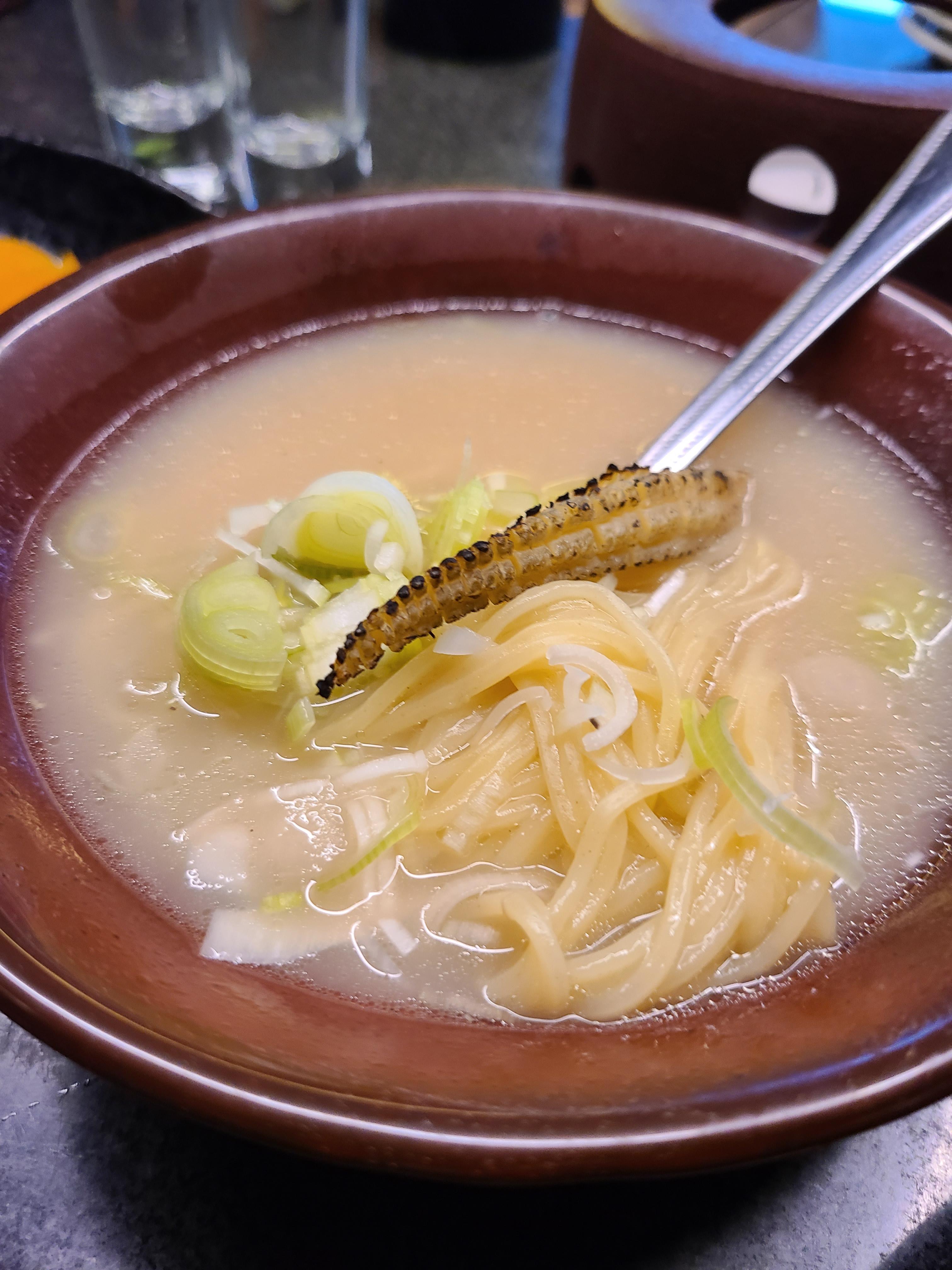 닭육수를 이용해서 만든 라멘. 기대보단 별로였다. 그냥 국물 맛이 꼬꼬면 맛이었음. 꼬꼬면으로 만든 게 아니었을까?