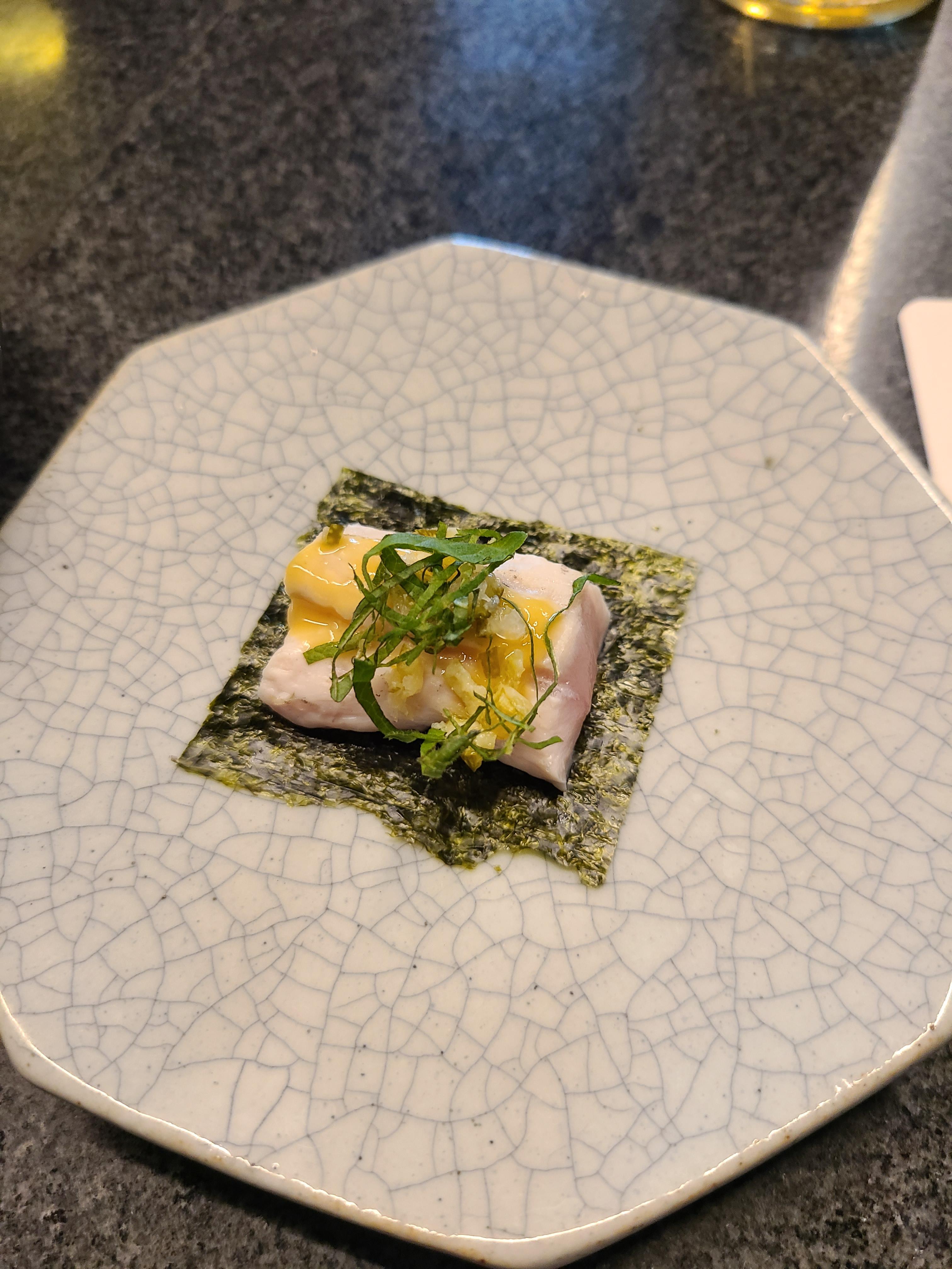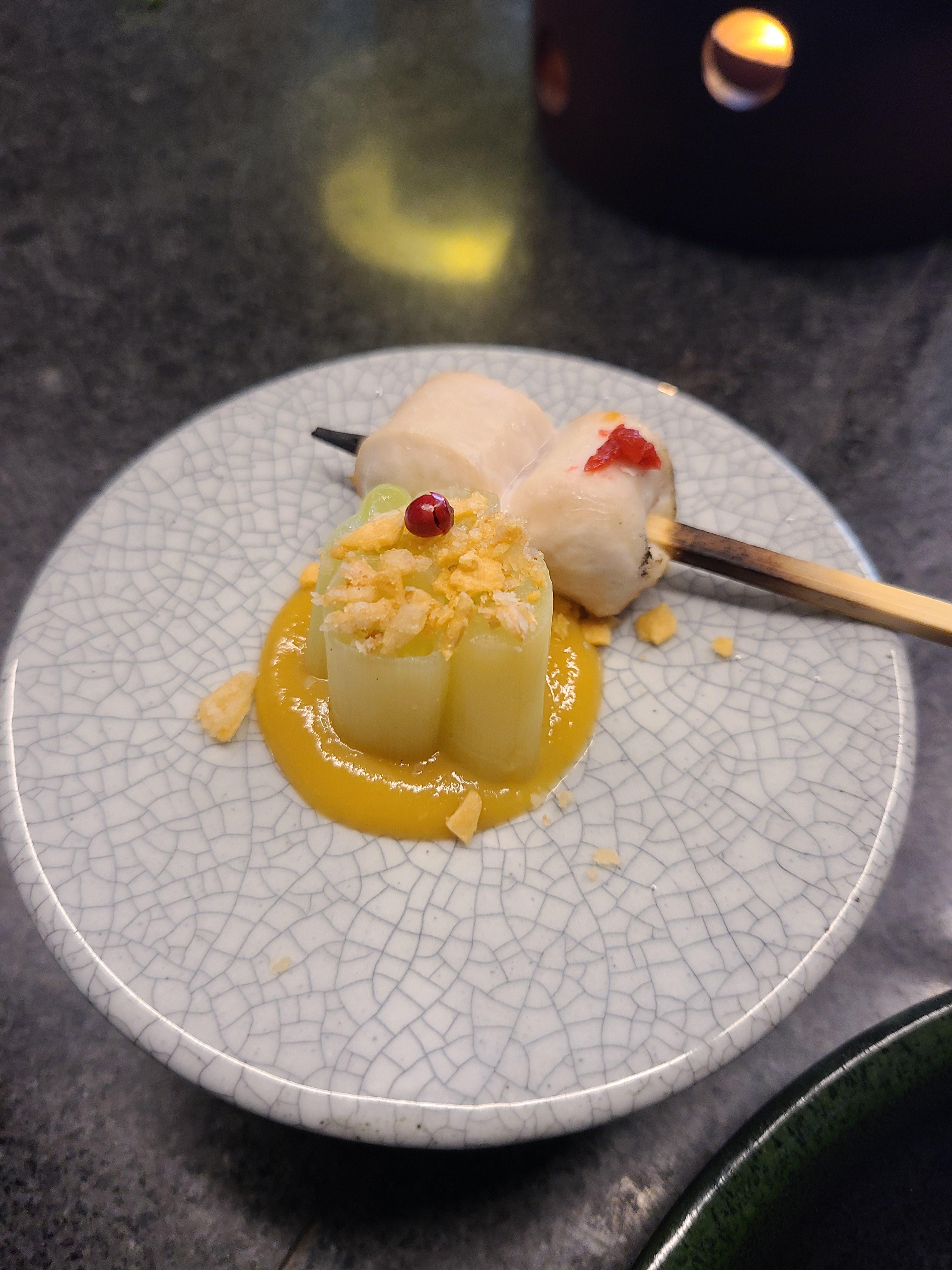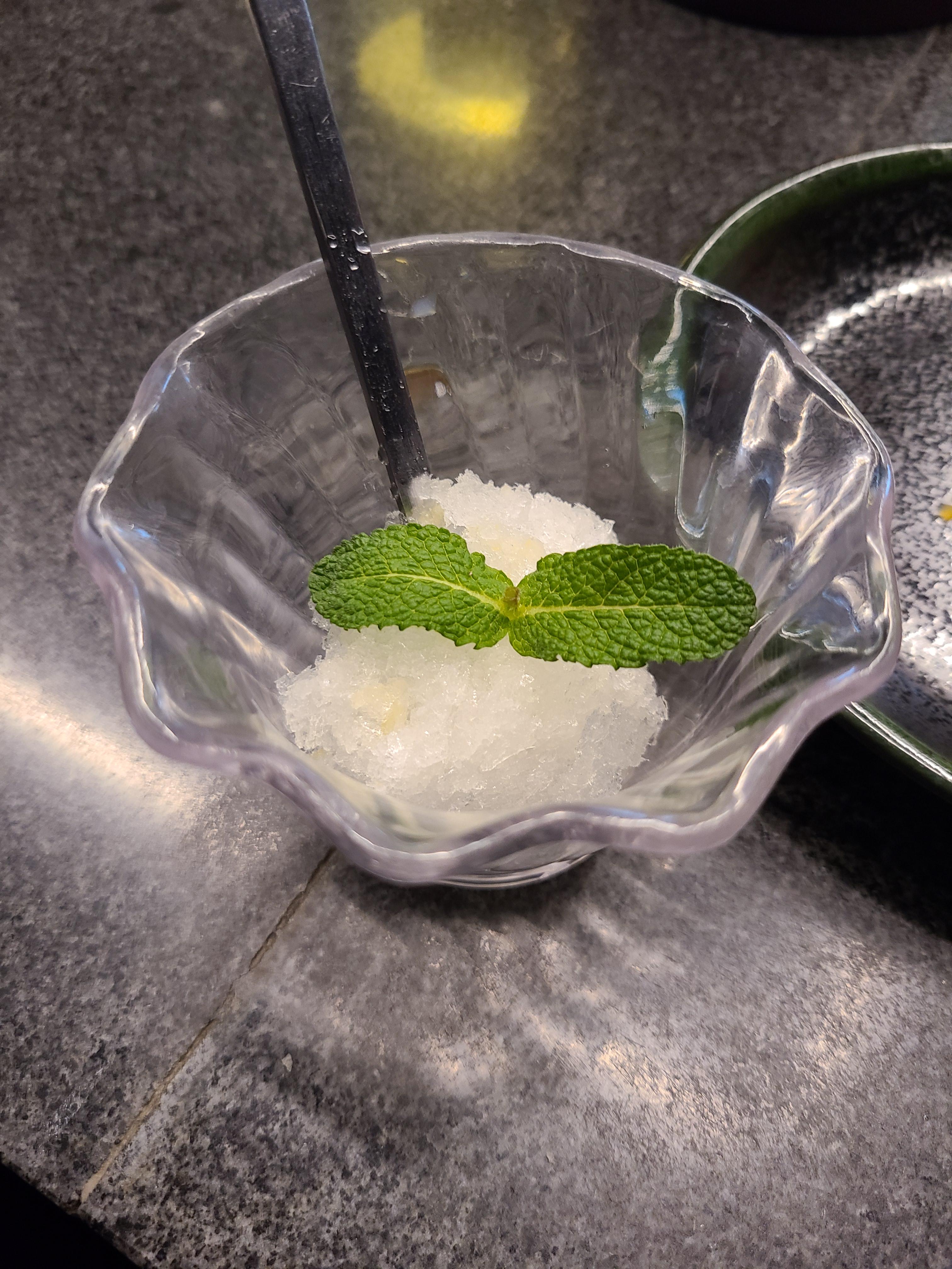 특이하게 음식 도중에 디저트가 나왔다. 아무래도 구이를 계속 먹다 보니 느끼할 수 있어서 그런 것 같았다. 갑자기 디저트가 나와서 끝나는 줄 알았는데 아니었다. 느끼할 수도 있으니 중간 디저트가 나온다고 설명해줘도 좋을 듯하다.