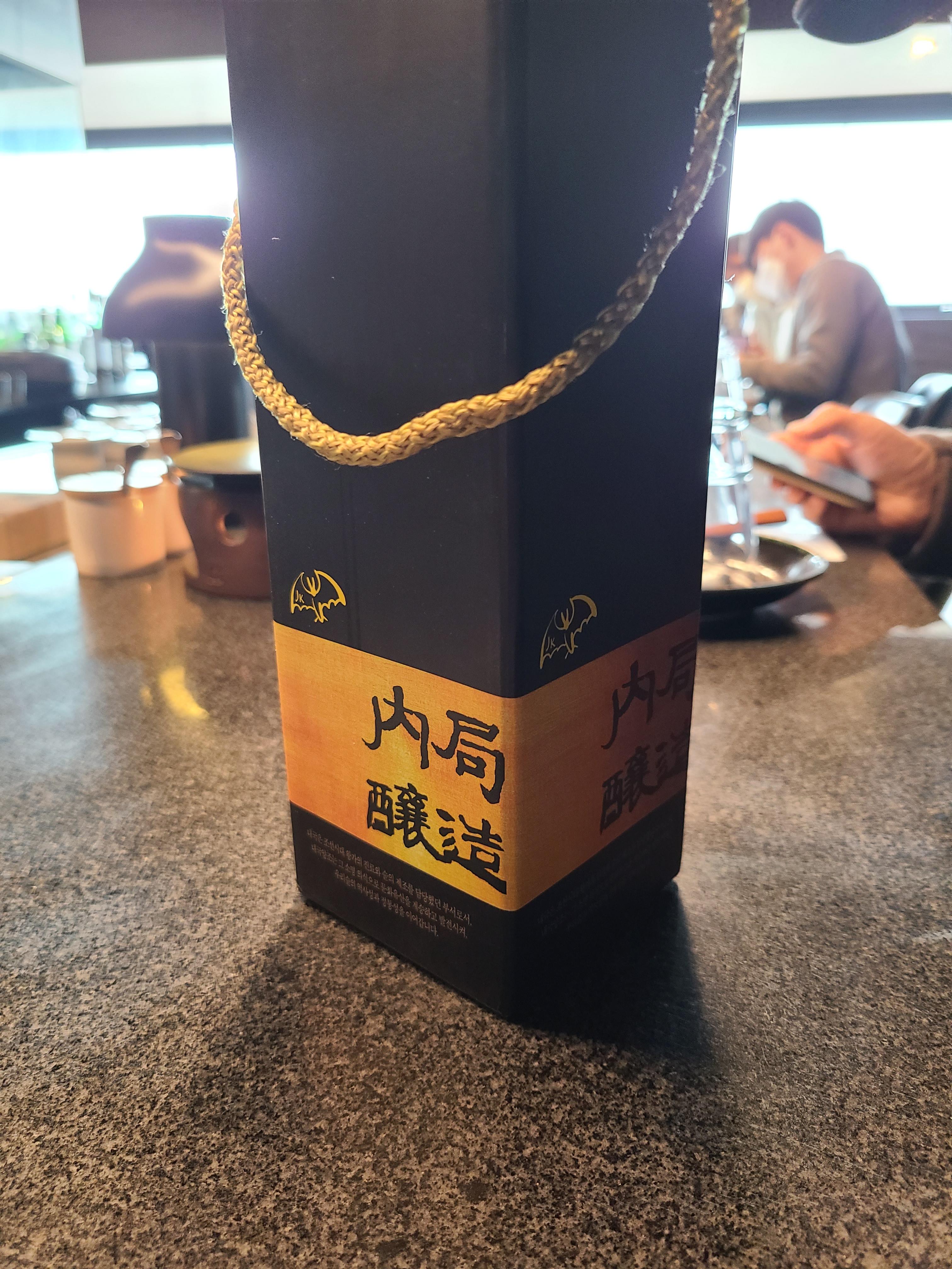 닭꼬치 구이와 함께 마실 술로 능이주를 가져갔다. 사실 솔송주도 준비했는데 콜키지 비용이 3만원이라 술 2병에 6만 원 내는 건 부담스러워서 능이주 한 병만 가져갔다.