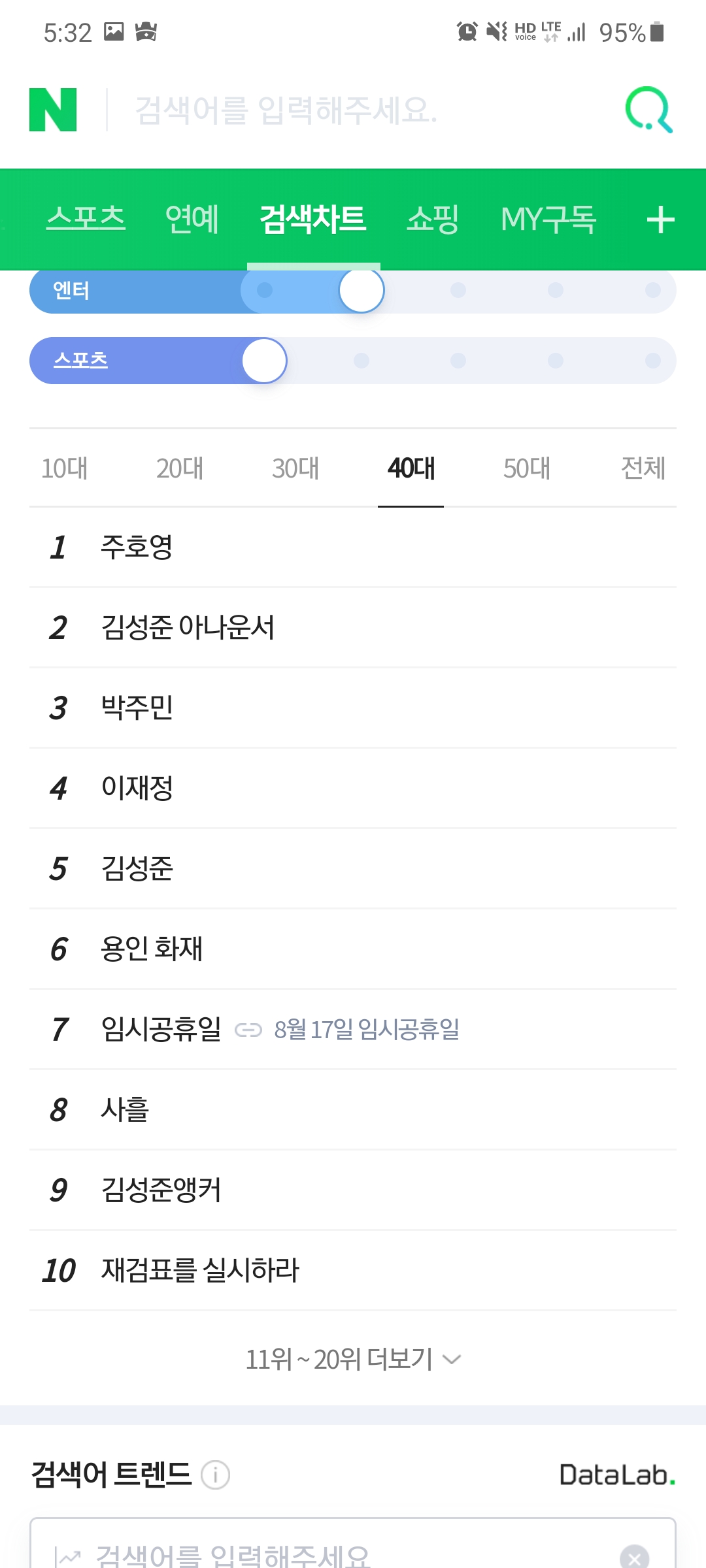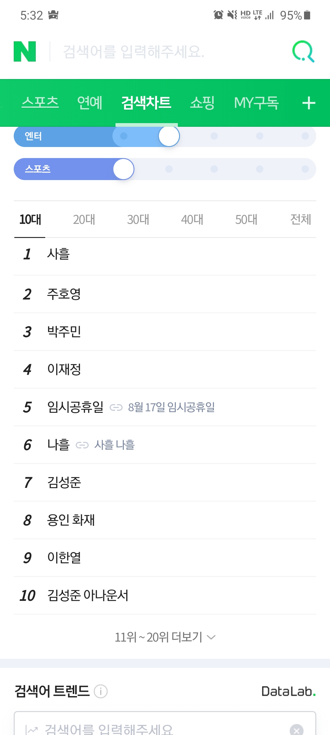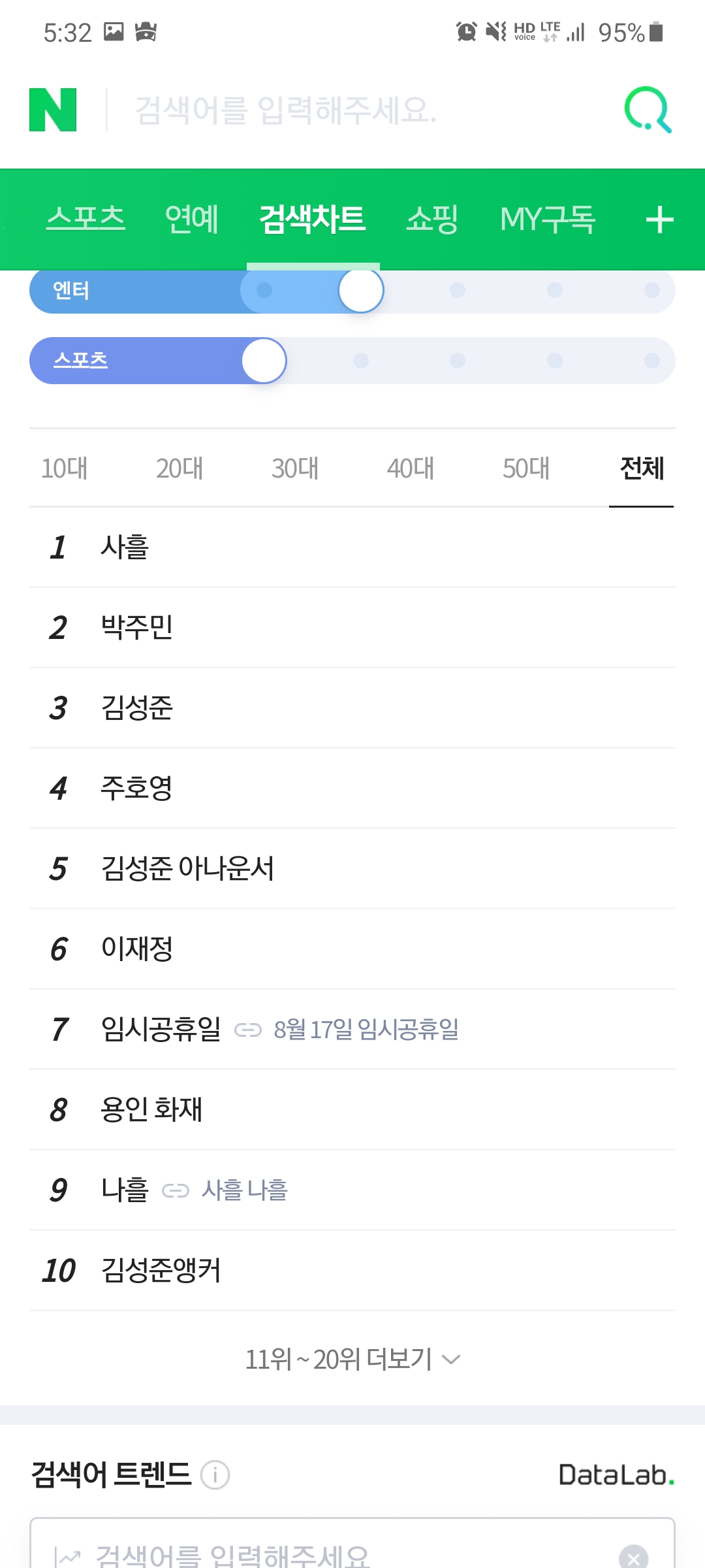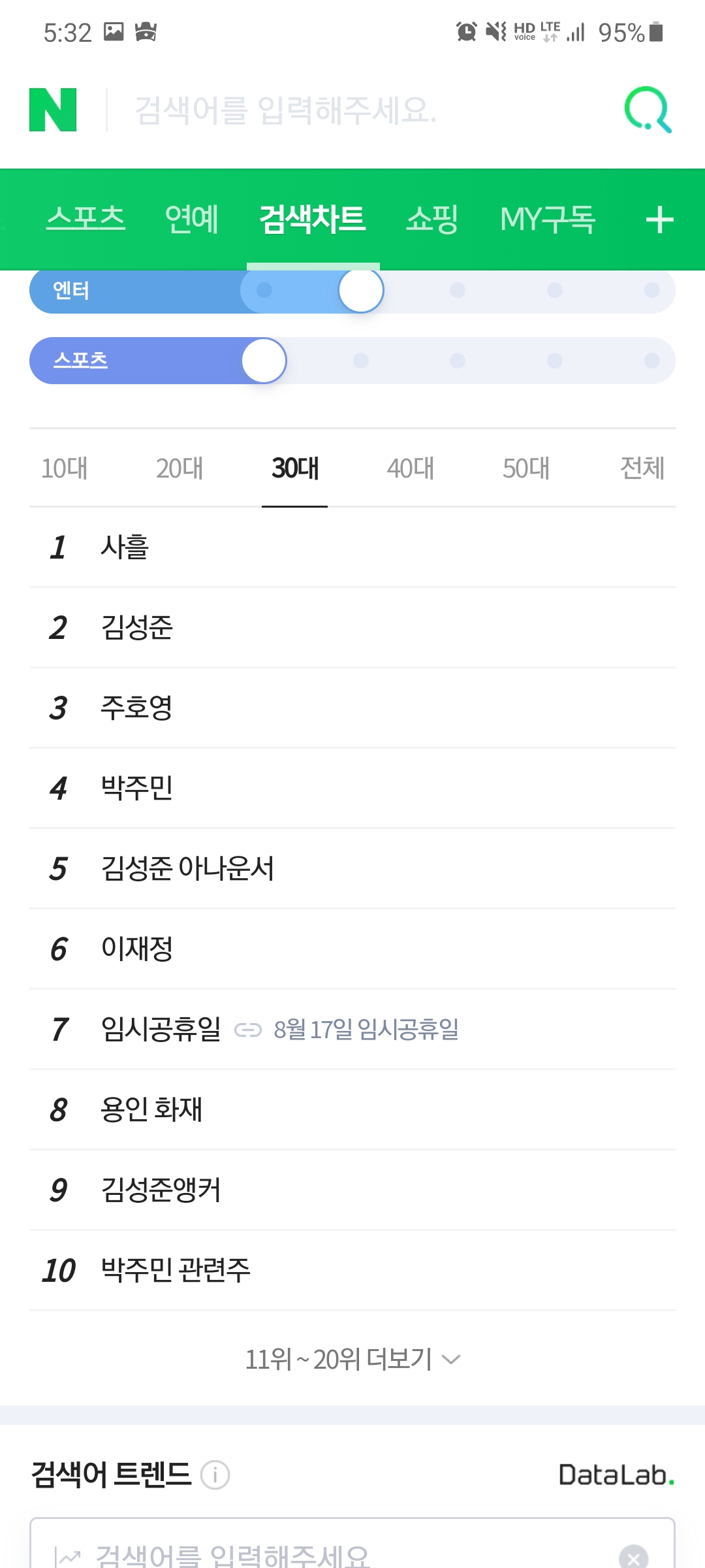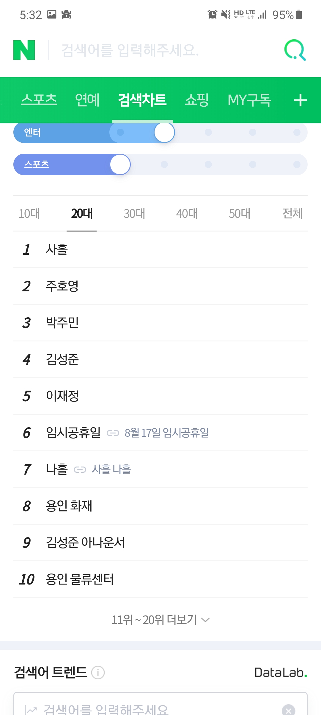 재밌는 건 연령대마다 사흘의 검색어 순위가 다르네요.