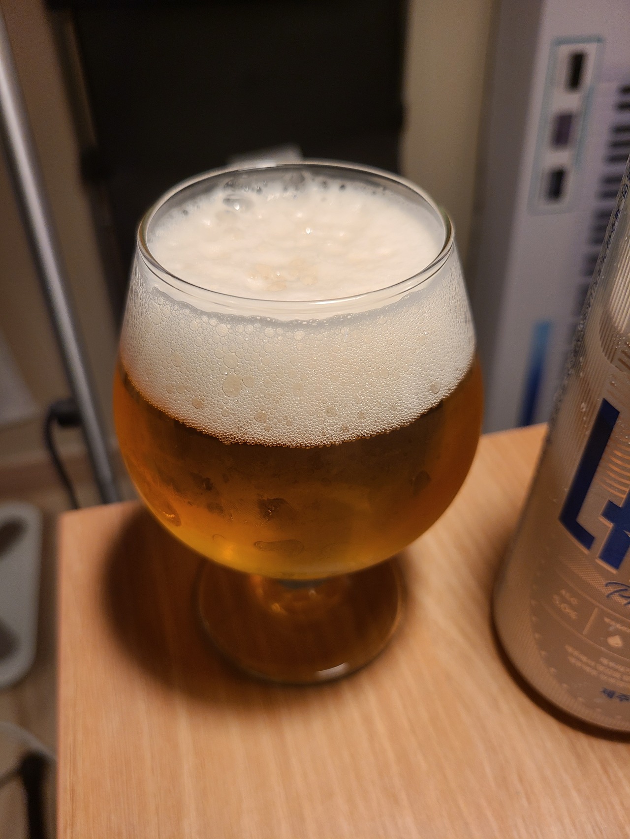 맥주를 잔에 따랐는데 상당히 많은 거품을 보고 놀랬다. 홉을 많이 넣으면 거품의 양과 유지력이 늘어난다고 하는데 홉을 많이 넣은 건가 싶었다.