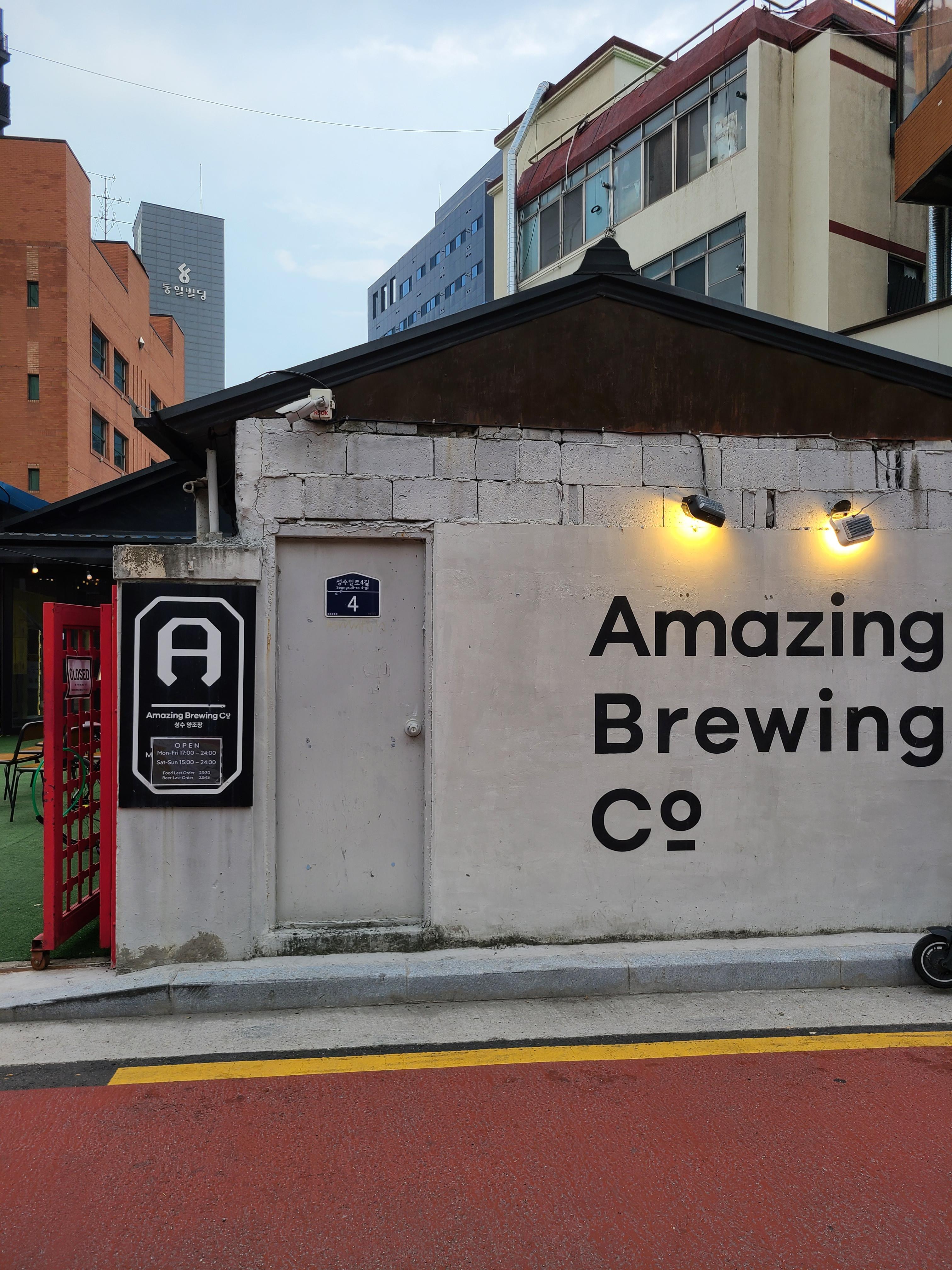 어메이징 브루잉 컴퍼니가 시작된 성수펍 바로 근처에 있었다. 입구부터 마크홀리씨 입간판이 우리를 반겨줬다.